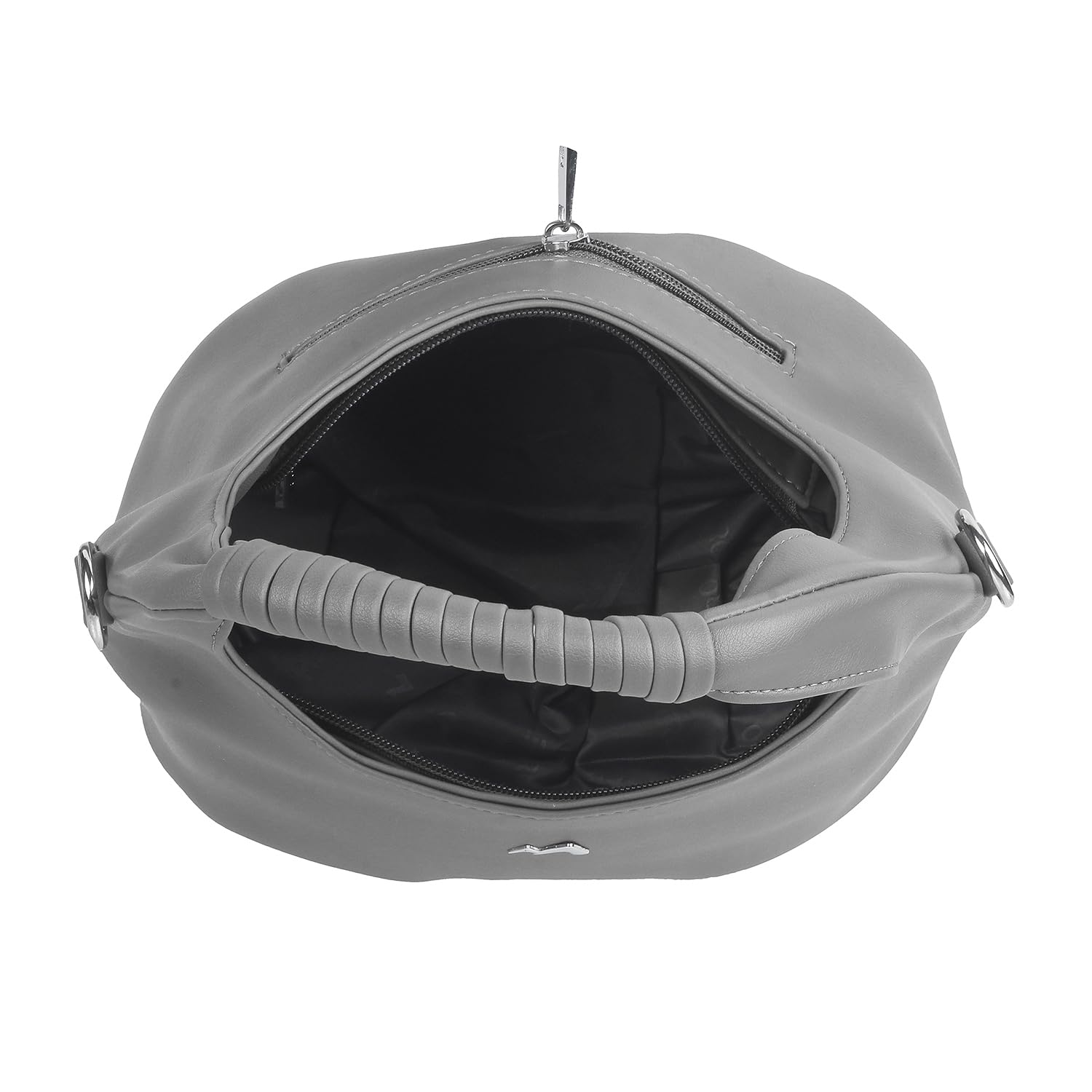 - Fashionable & Stylish: This bag presents a sleek grey faux leather construction with a distinctive gathered top handle design, giving it a unique silhouette. The minimalist aesthetic is enhanced by the subtle metal bird emblem and complementary zipper accents.