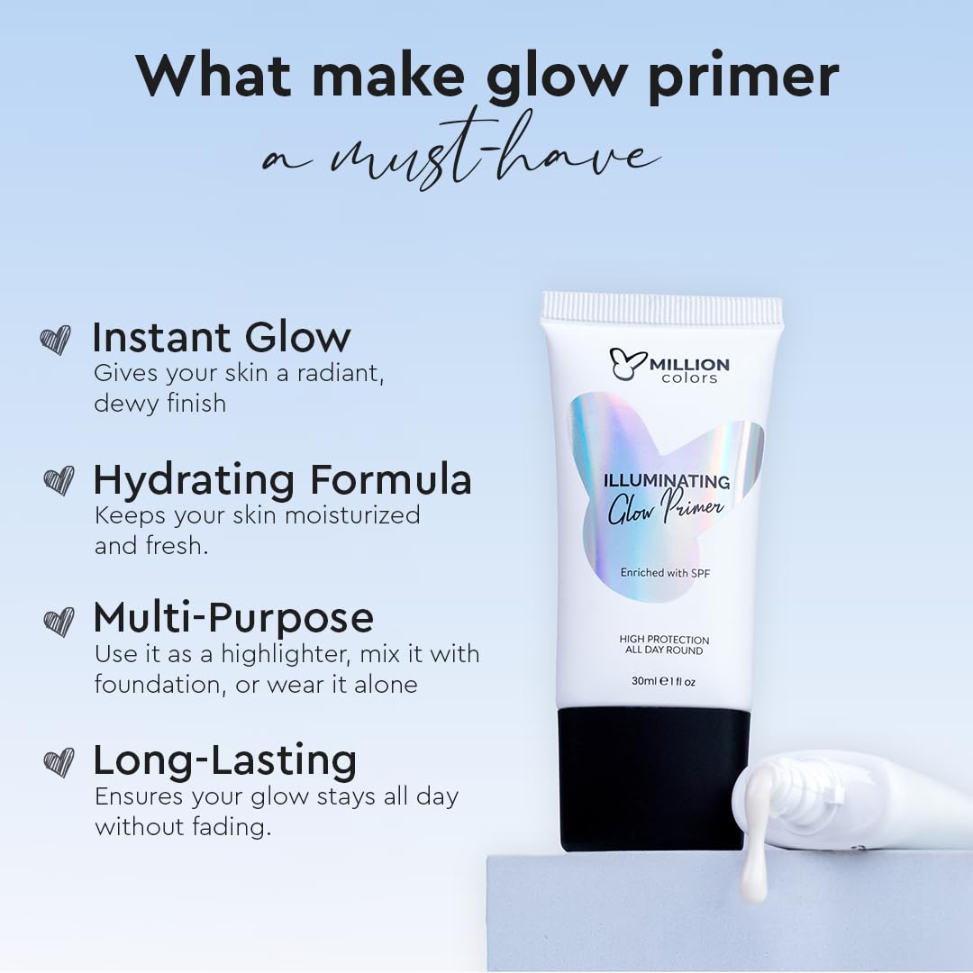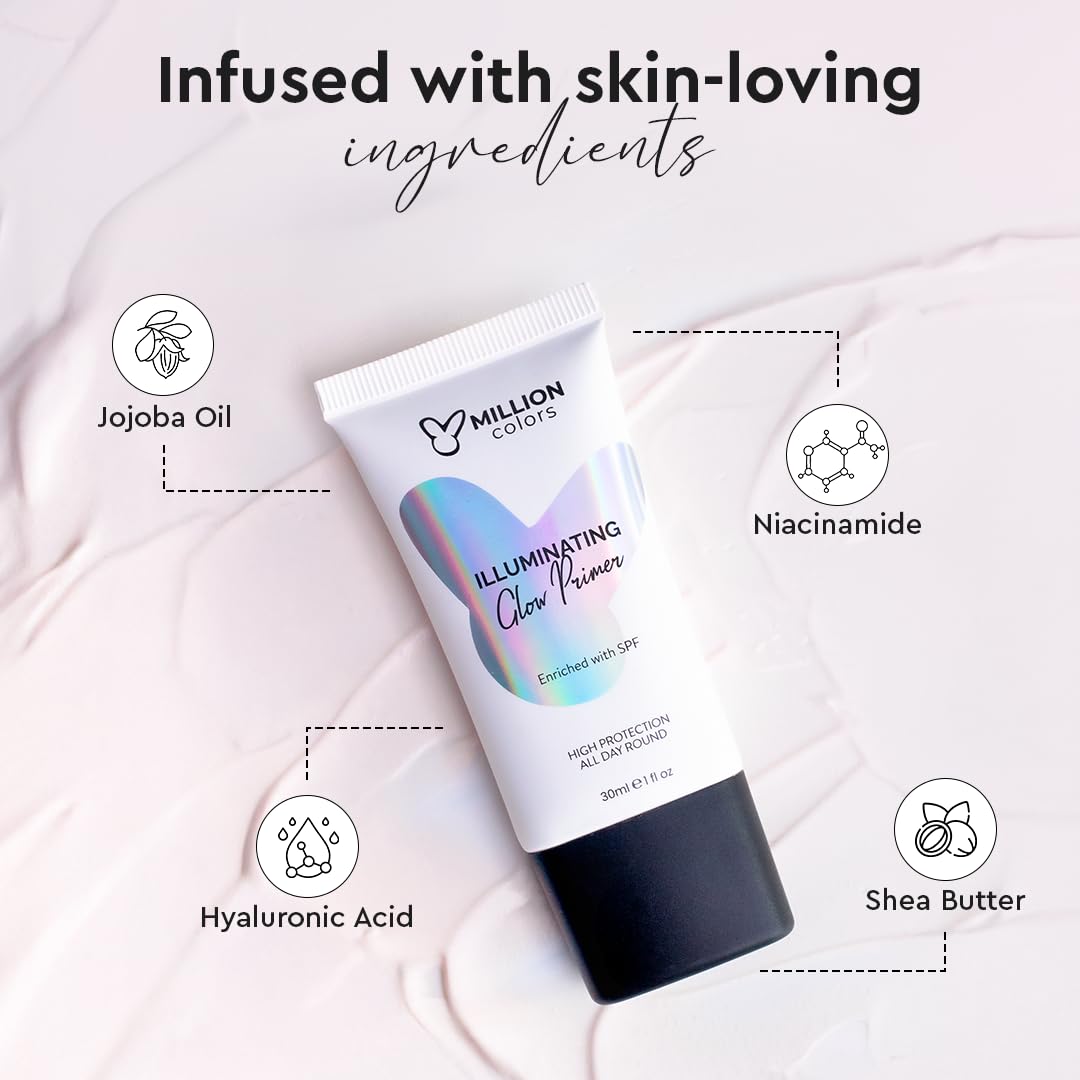 Million Colors Illuminating Strobe Cream for Face | Rose Gold Strobe Cream + Primer + Face Highlighter | Hydrating Makeup Base with SPF | 30Ml
