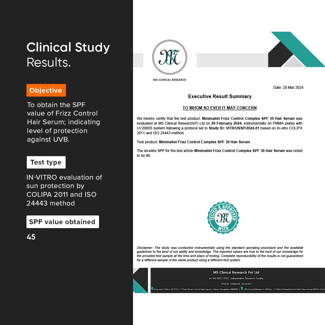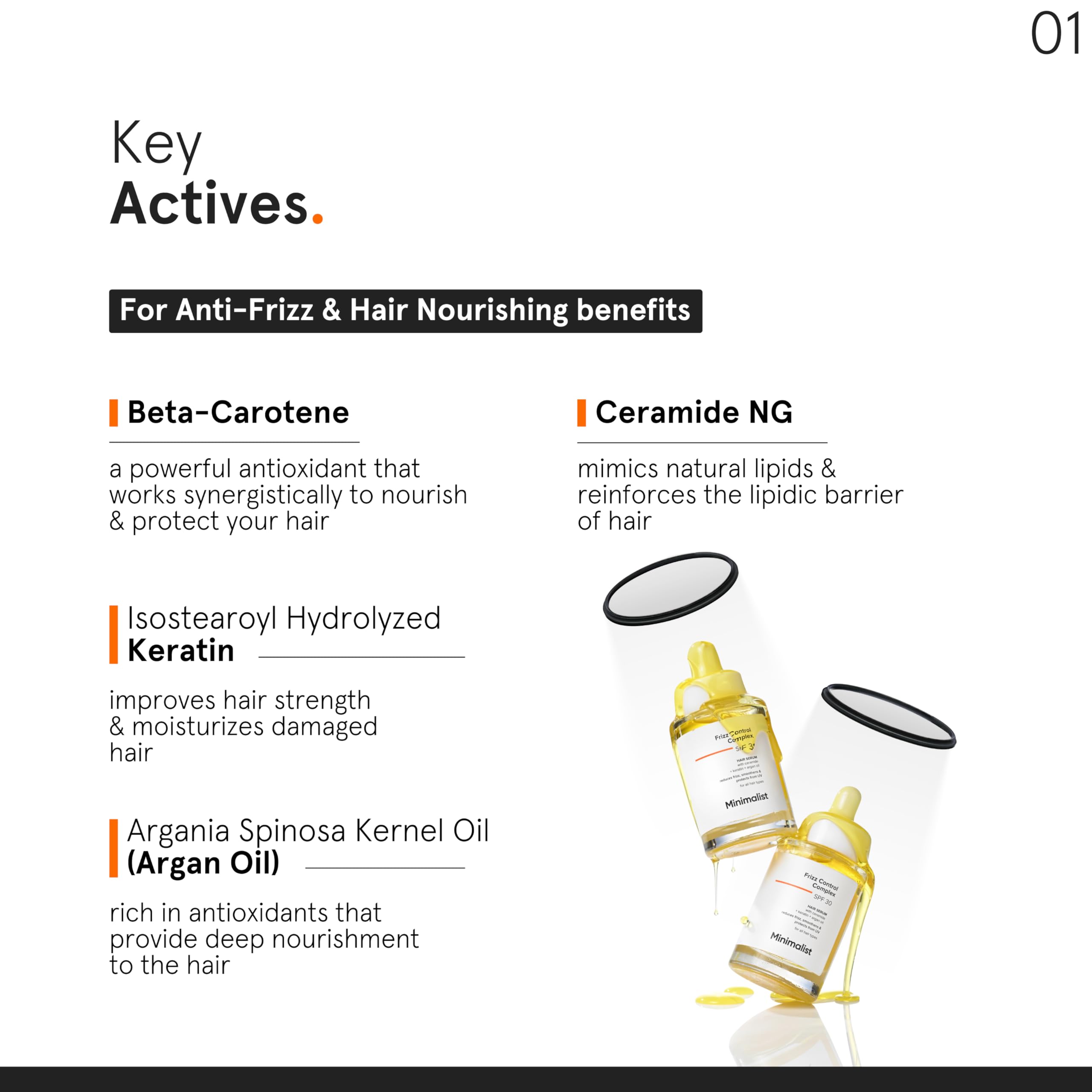 Minimalist Anti-Frizz Hair Serum SPF 30 With Keratin, Argan Oil & Ceramides for Dry Hair | Heat Protection Serum, Smoothens & Protects From UV | Lightweight | Leave In For Women & Men | 50 ml