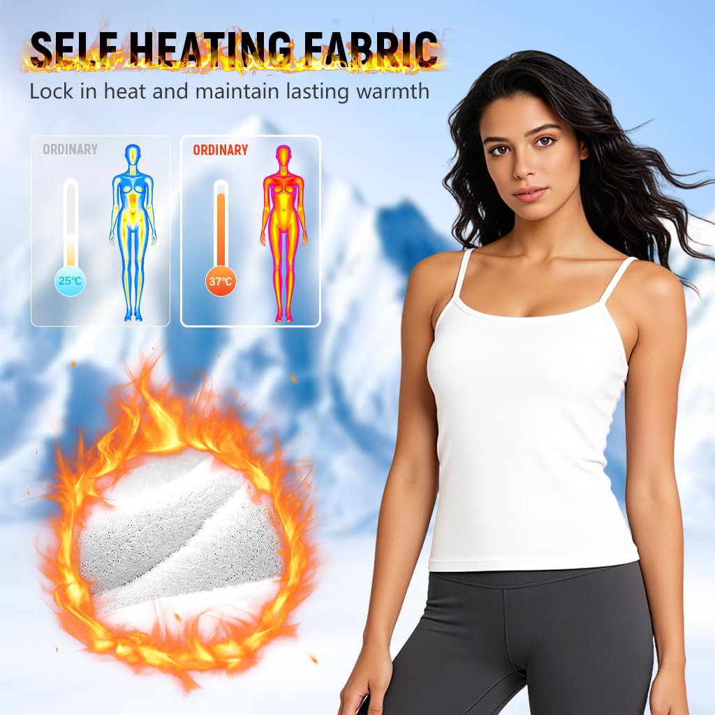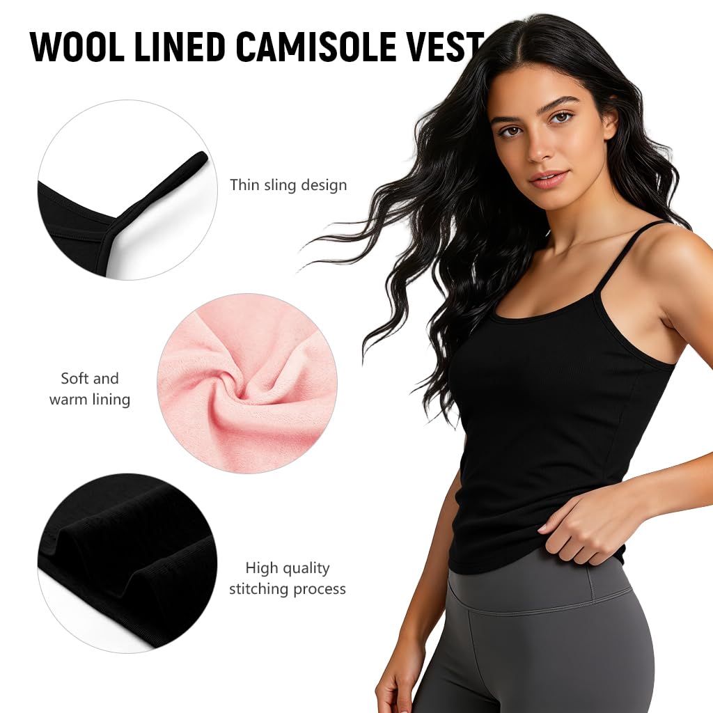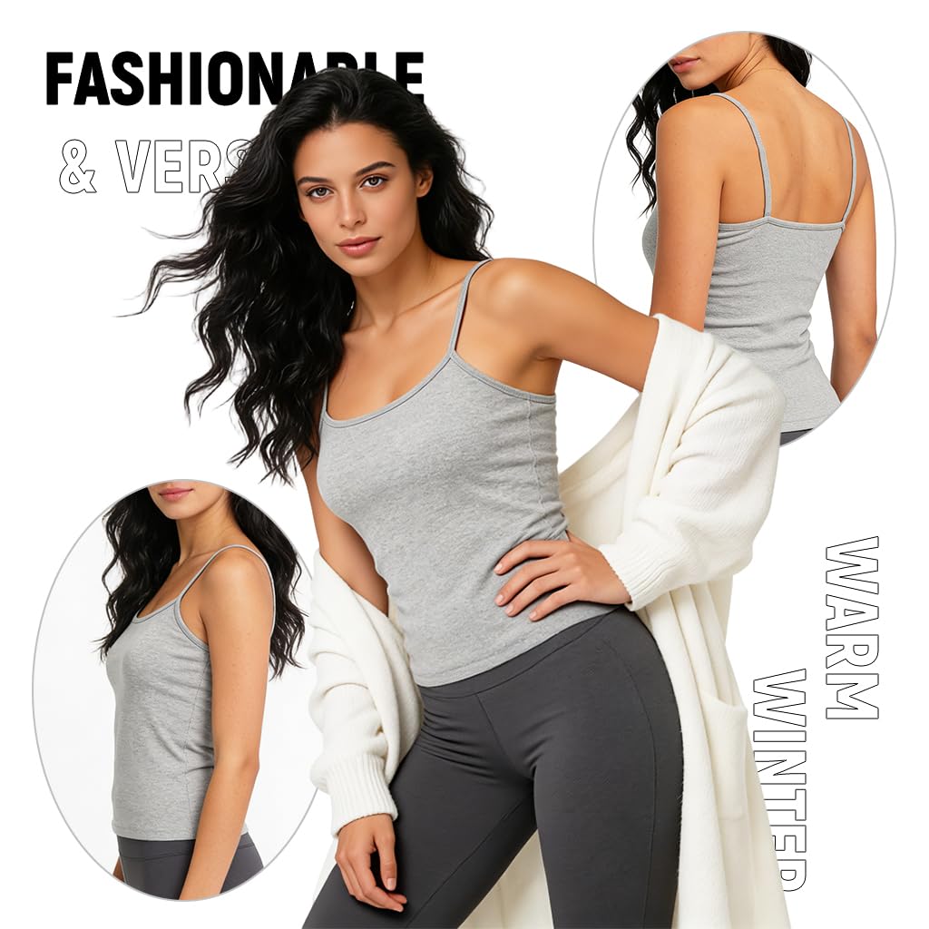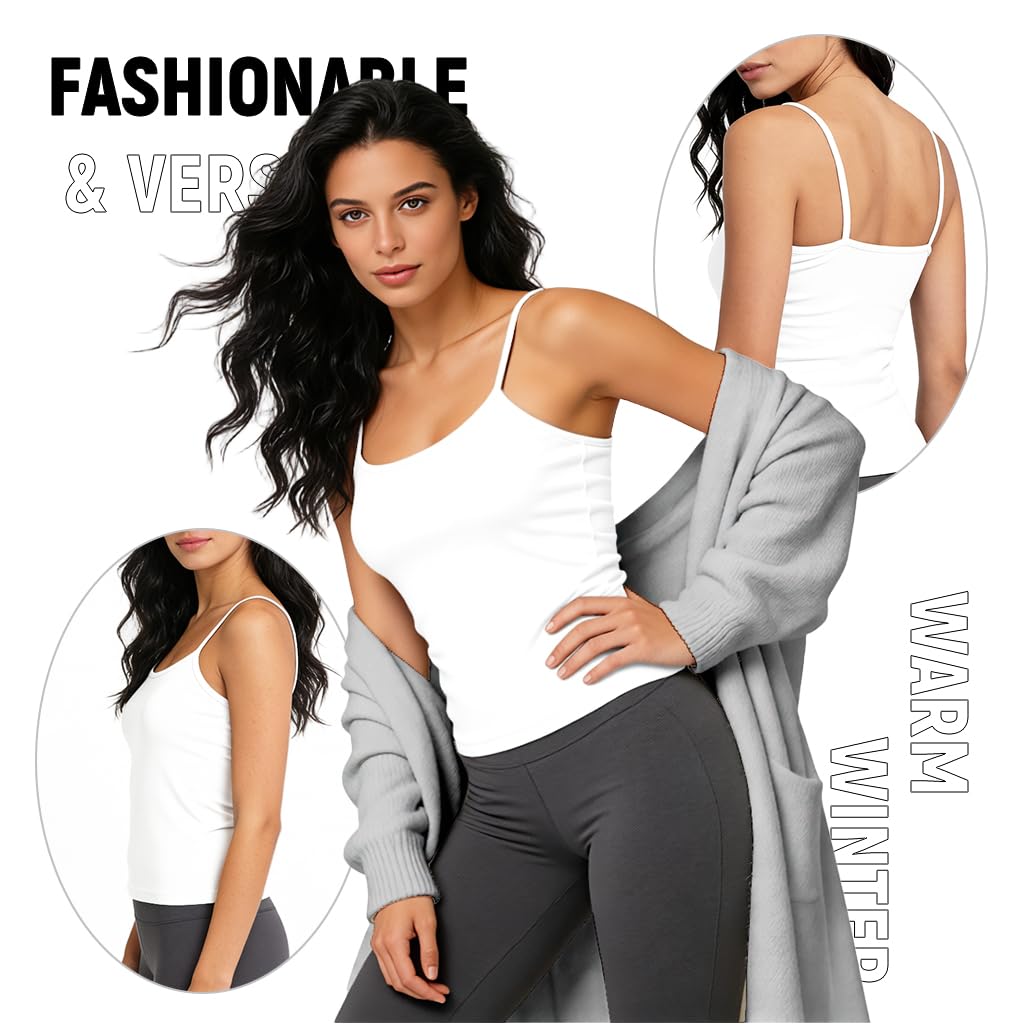CLASSIC STYLE AND FIT: Designed as a sleek sleeveless thermal camisole, this thermal for women offers a tasteful, feminine silhouette in timeless black. Crafted to layer under sweaters, jackets, or coats, it keeps warmth close to the body while adding a smooth, stylish base to any winter outfit.