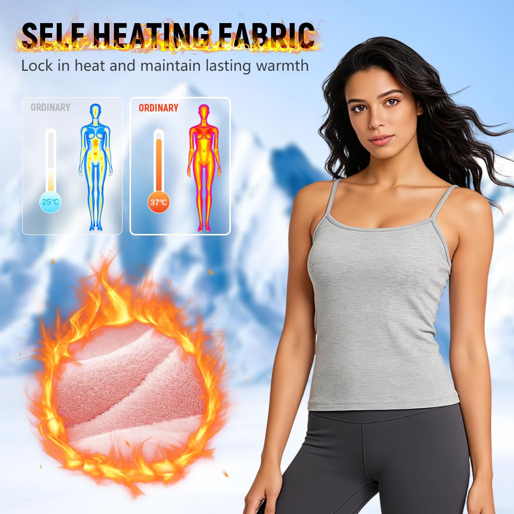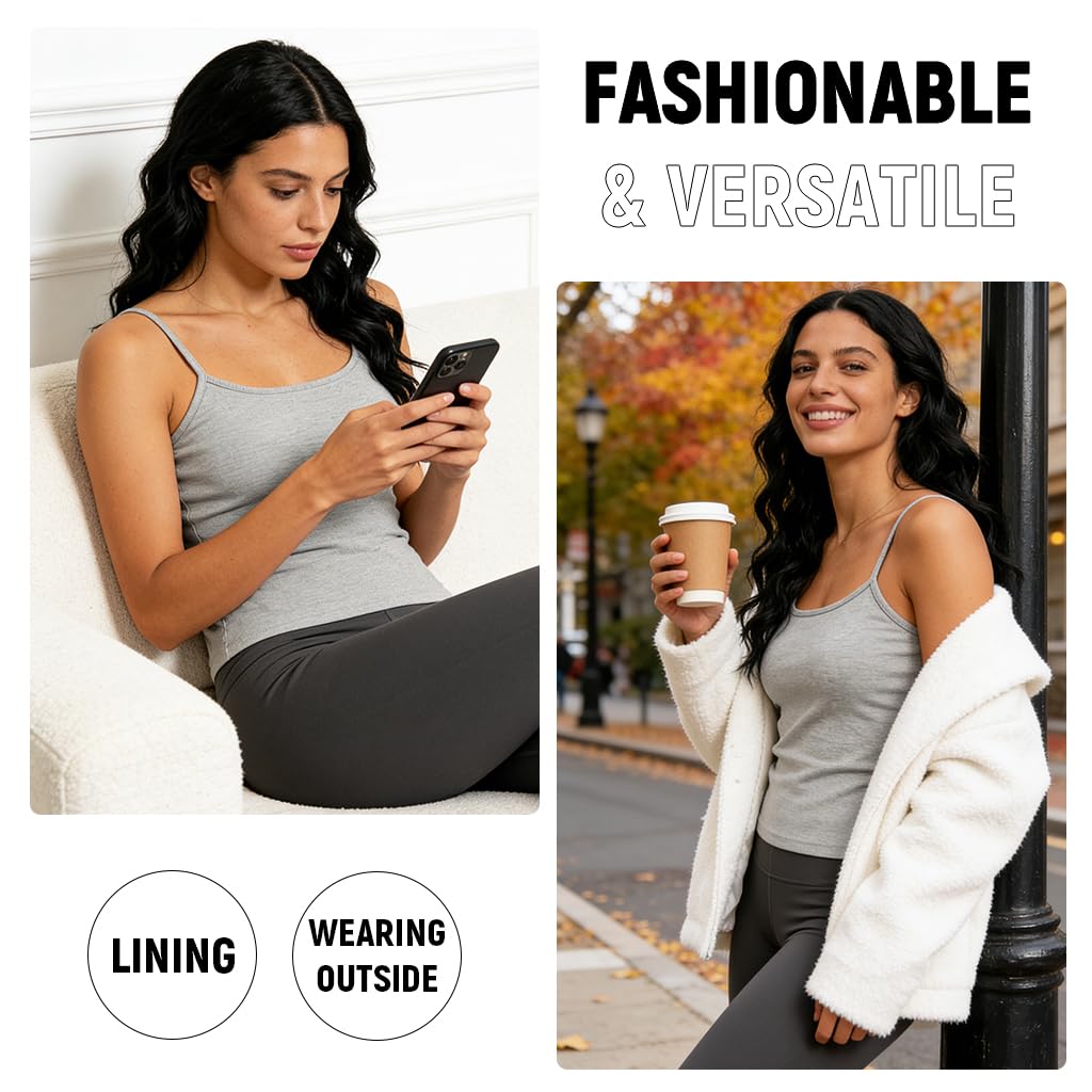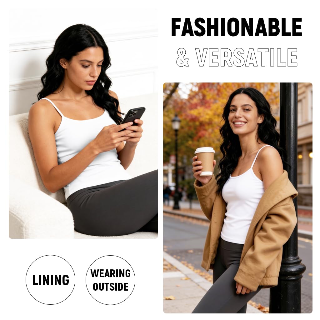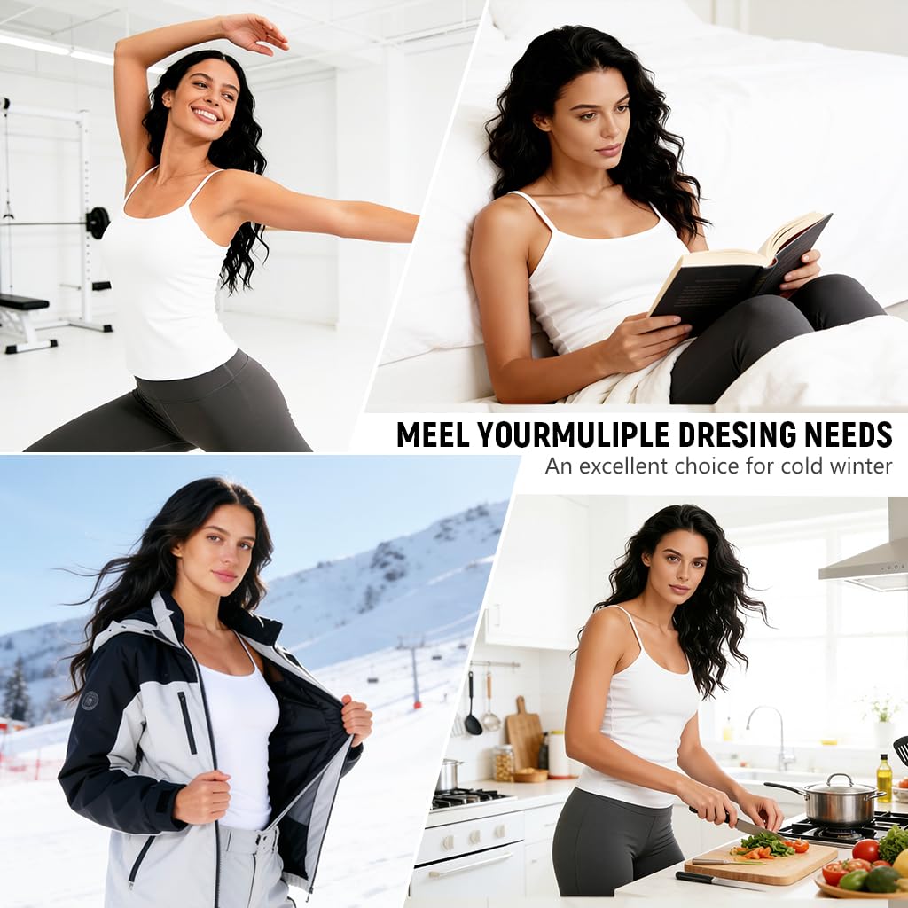 CLASSIC STYLE AND FIT: Designed as a sleek sleeveless thermal camisole, this thermal for women offers a tasteful, feminine silhouette in timeless black. Crafted to layer under sweaters, jackets, or coats, it keeps warmth close to the body while adding a smooth, stylish base to any winter outfit.