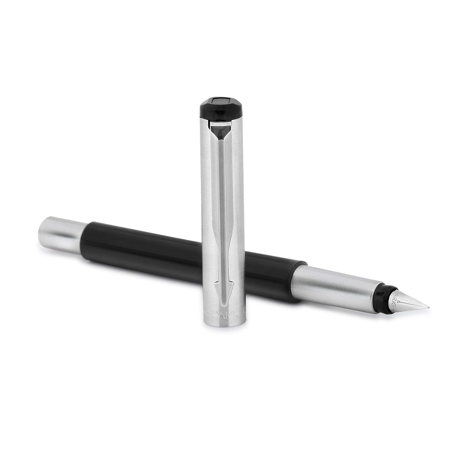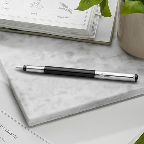 Parker Vector Mettalix Chrome Trim Fountain Pen with Quink Ink Bottle - Blue | Refillable Fountain Pen for Professionals, Students | Ergonomically crafted for comfortable, fatigue-free writing