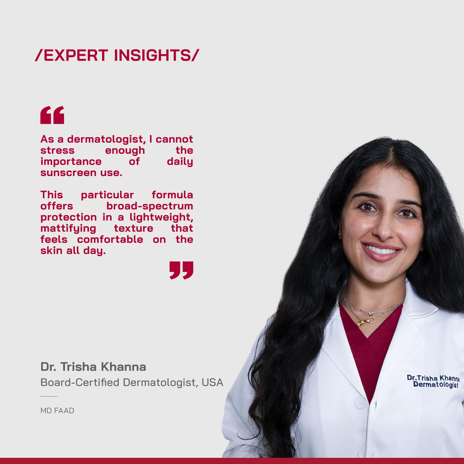 SPF 50 Sunscreen Formulated with Global Dermatologists This broad-spectrum SPF 50 PA++++ sunscreen is formulated in collaboration with dermatologists from the USA, UK, and India to help prevent tanning, sunburn, and signs of premature aging. Powered by active UVA & UVB filters, it defends your skin daily from harmful sun exposure.
