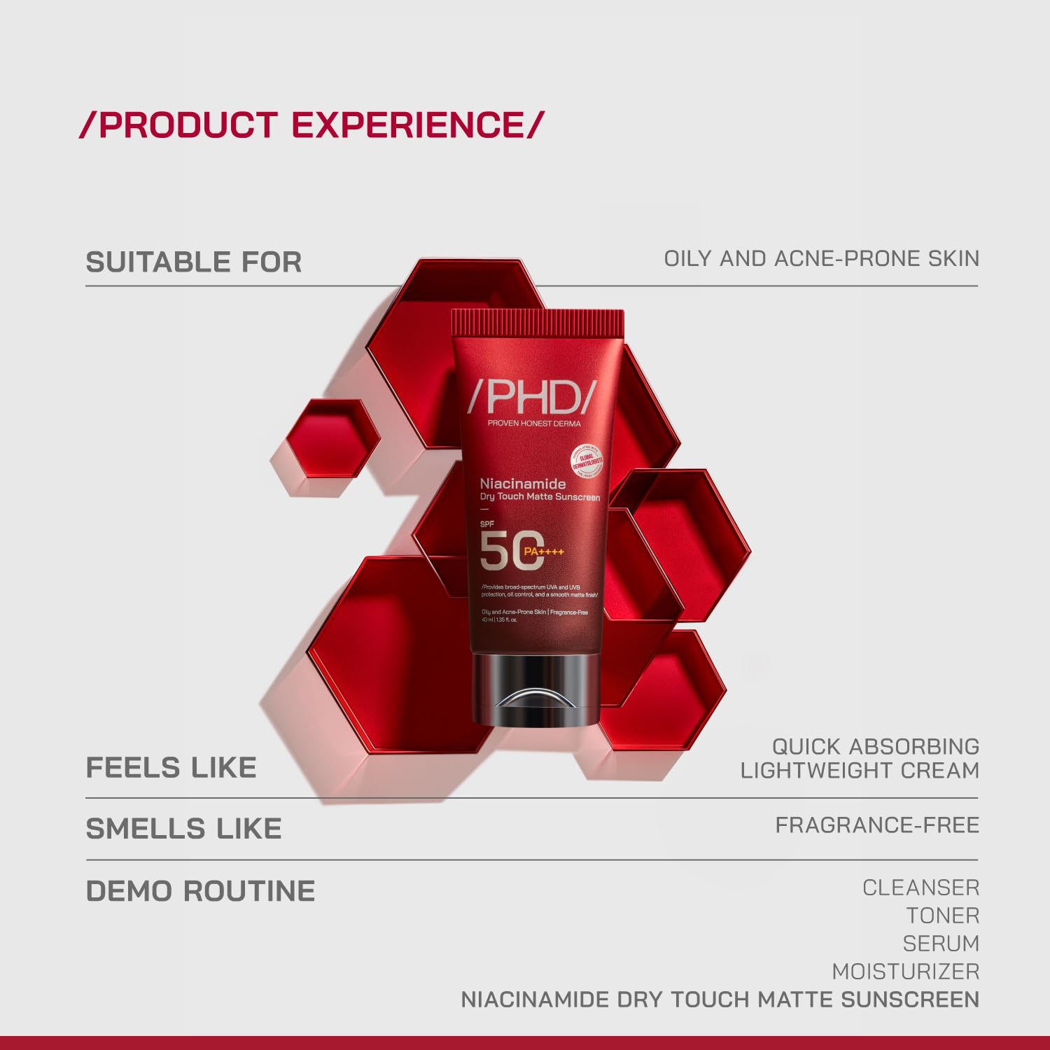 Lightweight & Oil-Free Matte Finish for Oily Skin A fast-absorbing SPF 50 sunscreen with a dry-touch texture that leaves a smooth, matte finish—perfect for oily and acne-prone skin. Controls excess oil and shine throughout the day without clogging pores, leaving your skin fresh, clean, and protected.