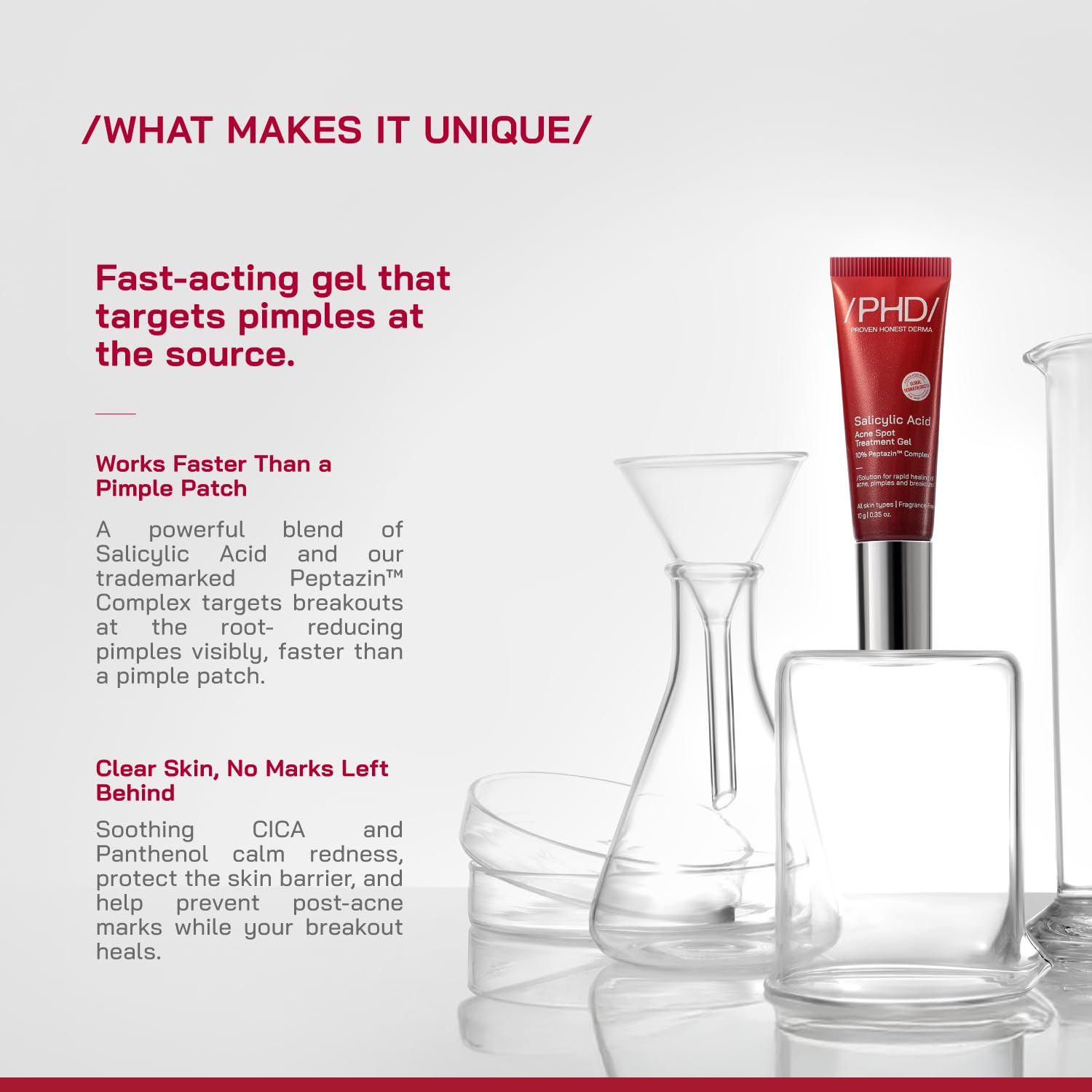 /PHD/ Salicylic Acid Acne Spot Treatment Gel 10g | Fast-Acting Pimple Remover & Acne Spot Corrector | Clear Gel with Peptazin™ Complex | Alternative to Pimple Patches