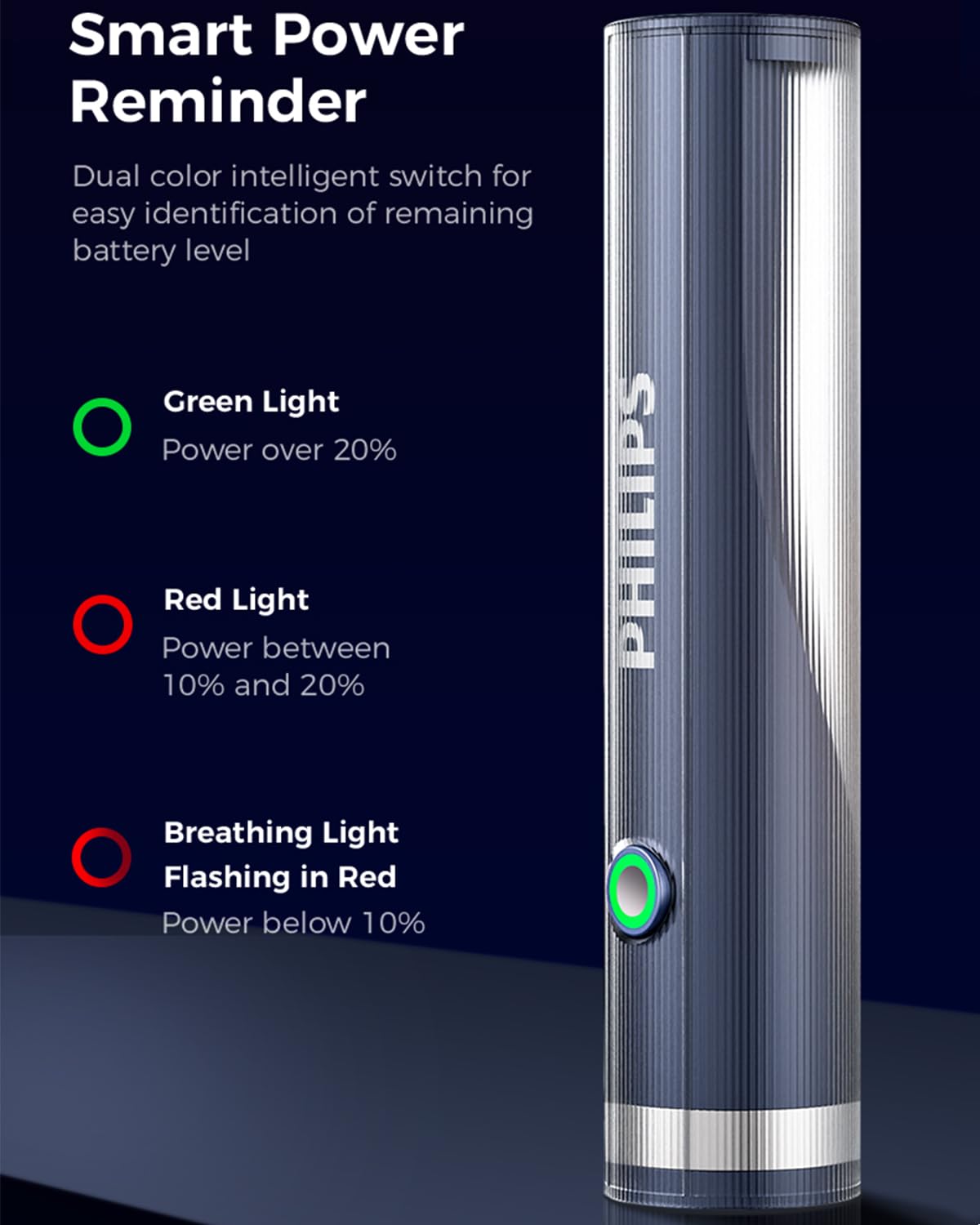 【Power Indicator Light & Anti-Slip】The remaining battery level indicator light is green for 100% -20%, red for 20% -10%, and flashing red for less than 10%. The anti slip pattern makes you grip more firmly, not afraid of bumps, compact and easy to carry, suitable for various outdoor use scenarios