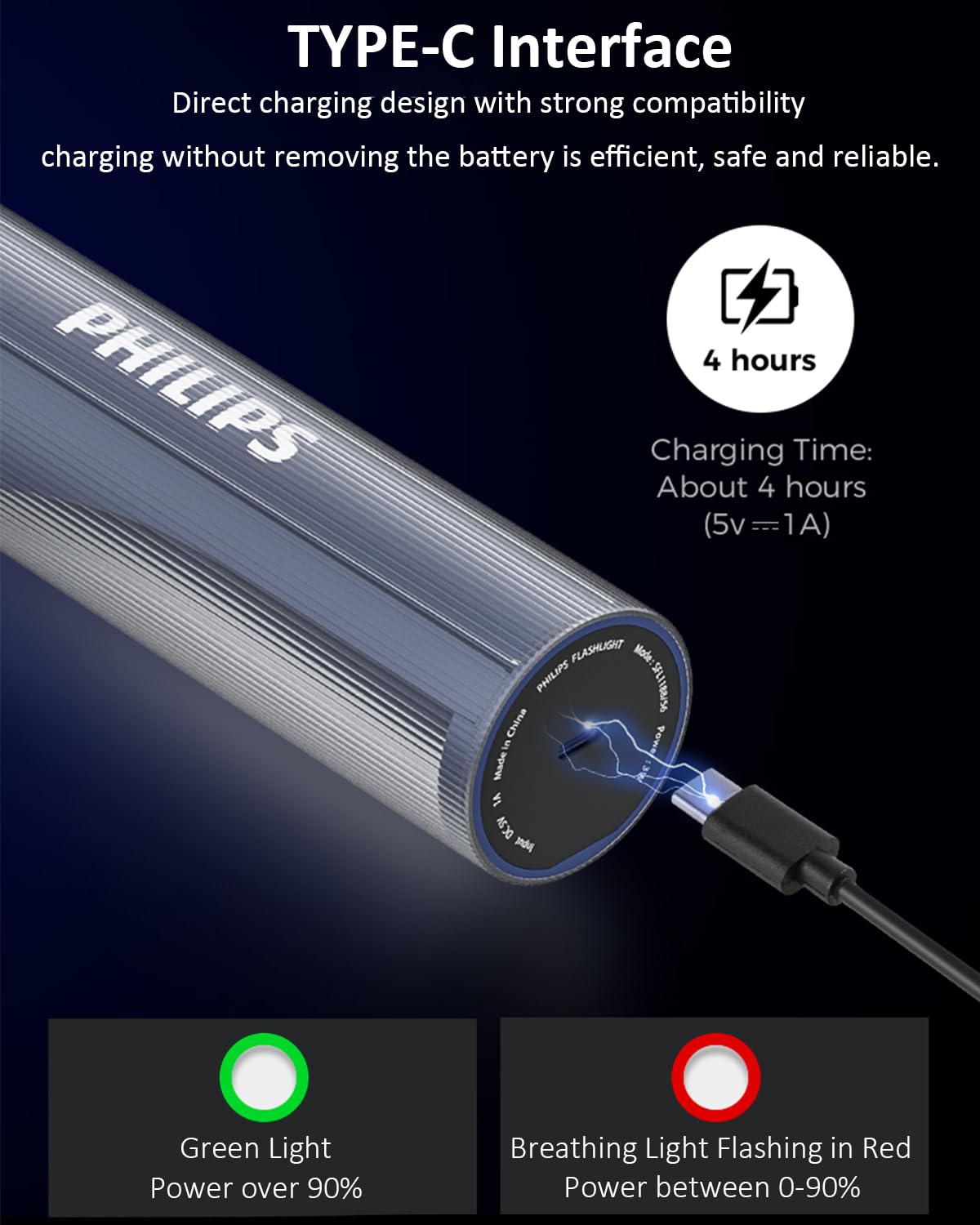 【Waterproof & Anti Drop】12 month warranty. The flashlight is made of durable ABS+PC material, high strength and good toughness, drop resistance height of 1 meter. Hidden waterproof USB-C charging port, IP44 level, waterproof and dustproof, safe and reliable