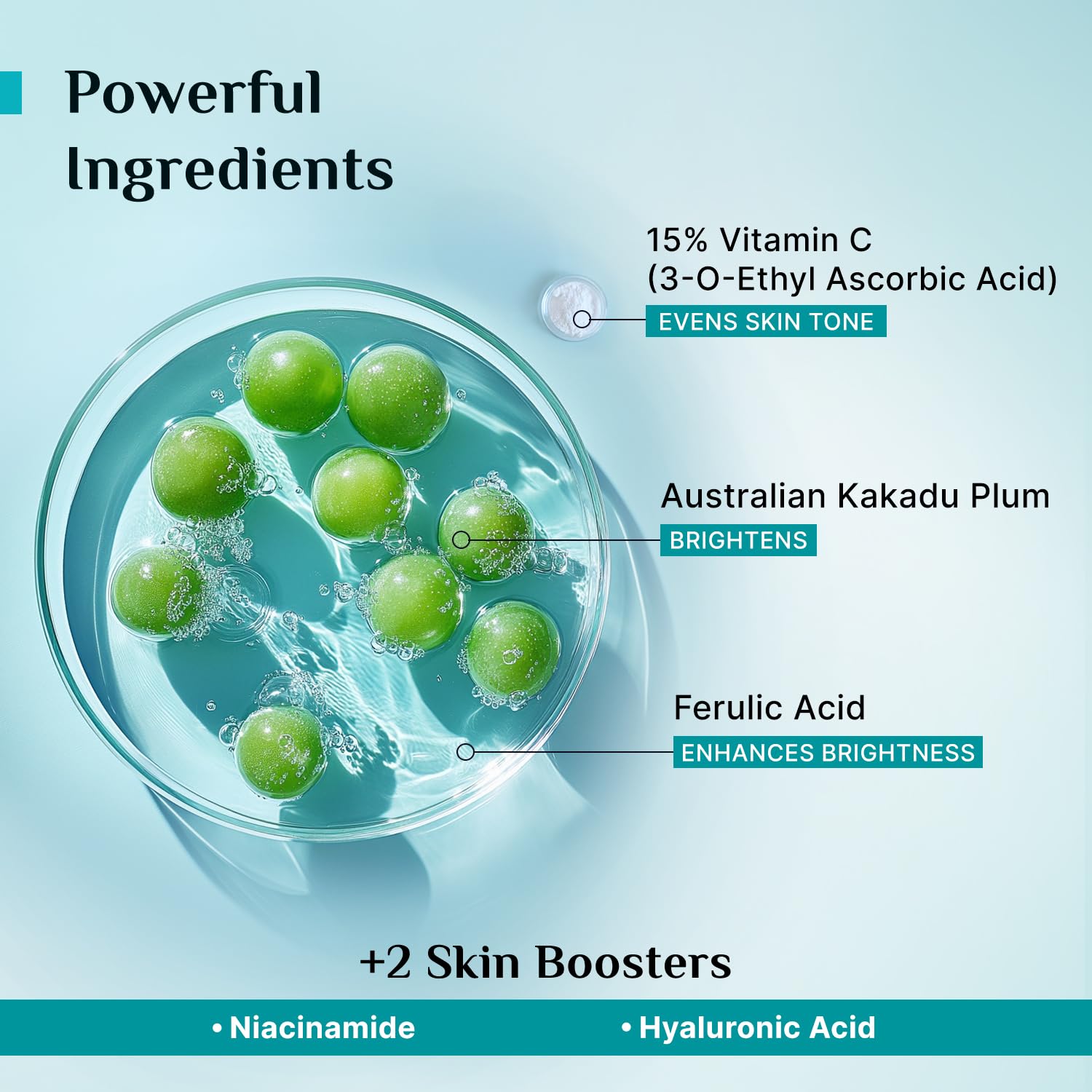 ✅Boosts Brightness:Made with potent concentration of Vitamin C in the form of 3-O-Ethyl Ascorbic Acid, a stable and effective derivative of Vit C.
