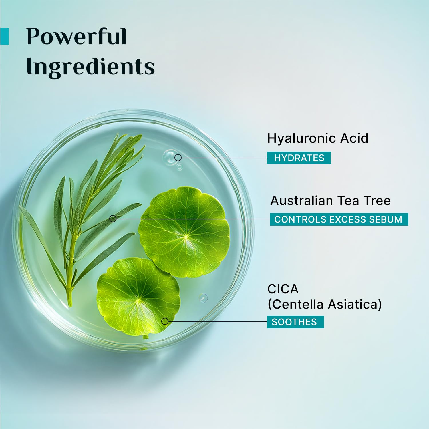 Pilgrim Australian Tea Tree Light Gel moisturizer for face for oily & acne prone skin with Hyaluronic acid & CICA |Tea tree light non-oily moisturizer for face |For women & men | 80 gm