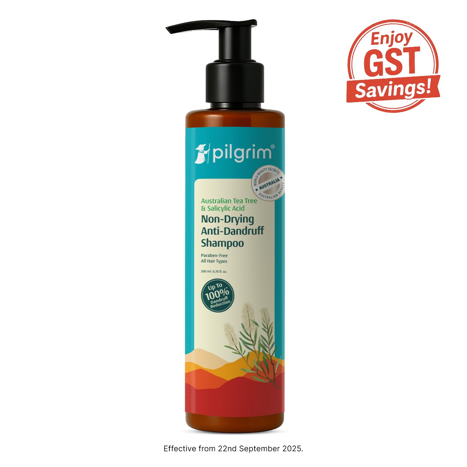 Pilgrim Australian Tea Tree Non-Drying Anti-Dandruff Shampoo 200 ml | Removes Dandruff from Source | Helps with Itching, Irritation | Strong & Smooth Hair | For Men & Women |