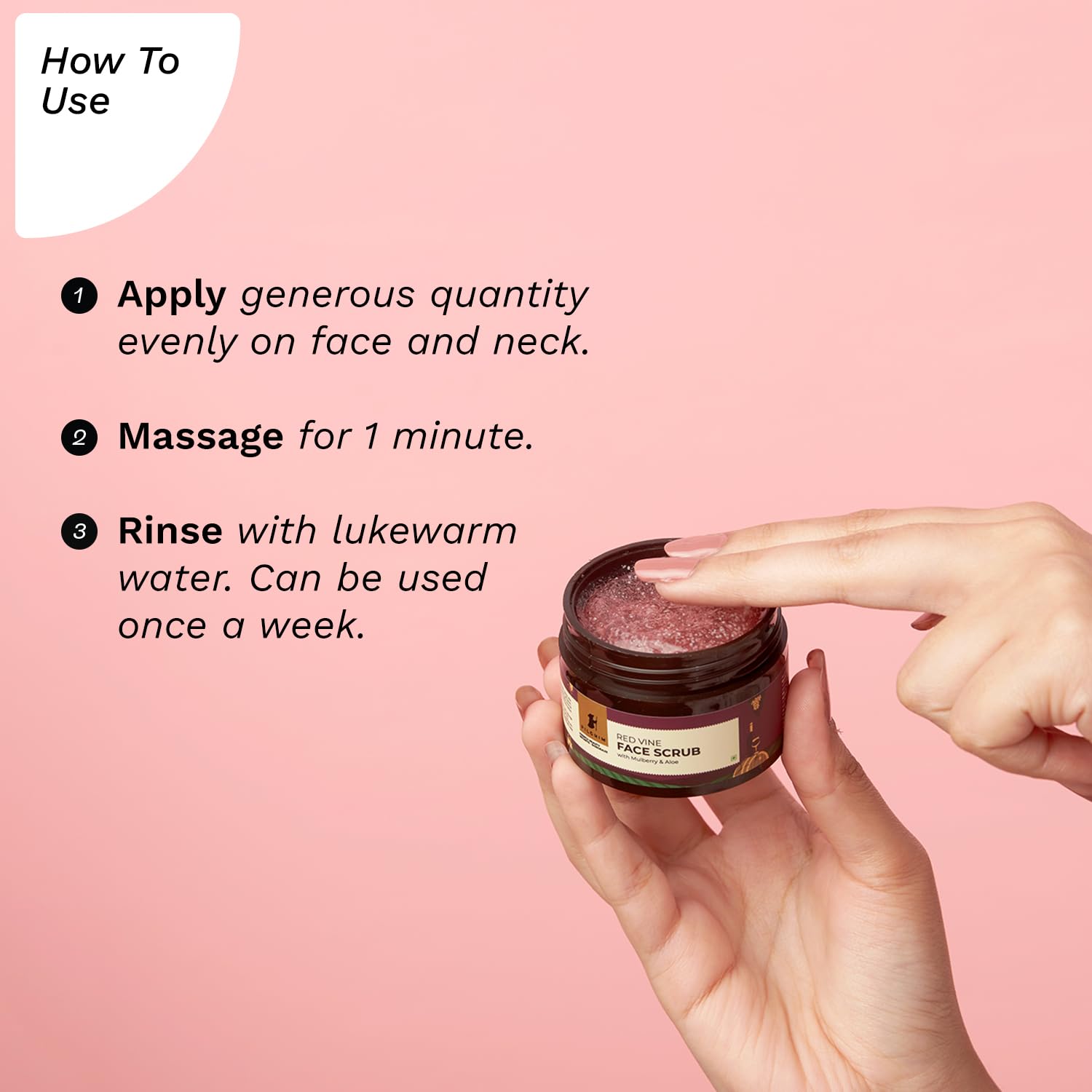 PILGRIM French Red Vine Face Scrub with Mulberry Extract & Aloe for Glowing Skin, Tan Removal, De-Pigmentation, Dry, Oily, Combination Skin, Men & Women, 50gm