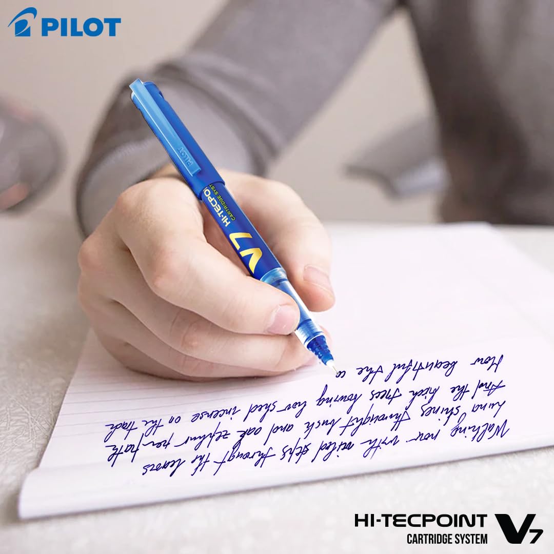 Pilot V7 Hi-tecpoint Roller ball pen with Cartridge System - 2 Blue Pens, 4 cartridges