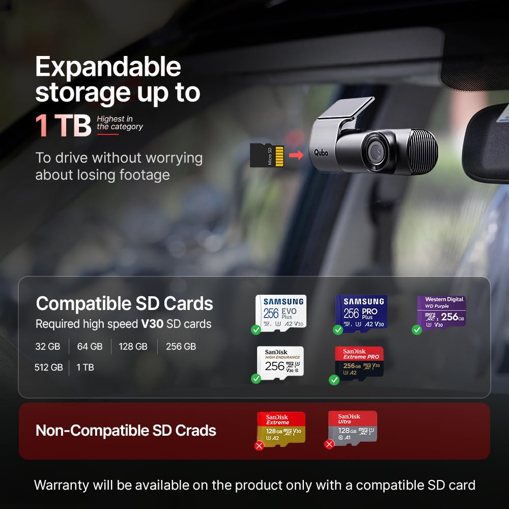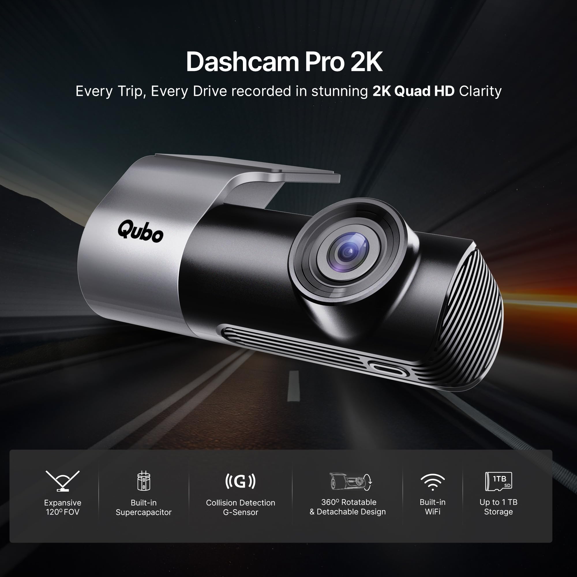 Qubo (2025 Edition) Car Dash Camera Pro 2K Resolution QHD Dash Cam from Hero Group | Made in India | USB Input | Wide Angle View | G-Sensor | Wi-Fi | Emergency Recording | Supports Up to 1 TB SD Card