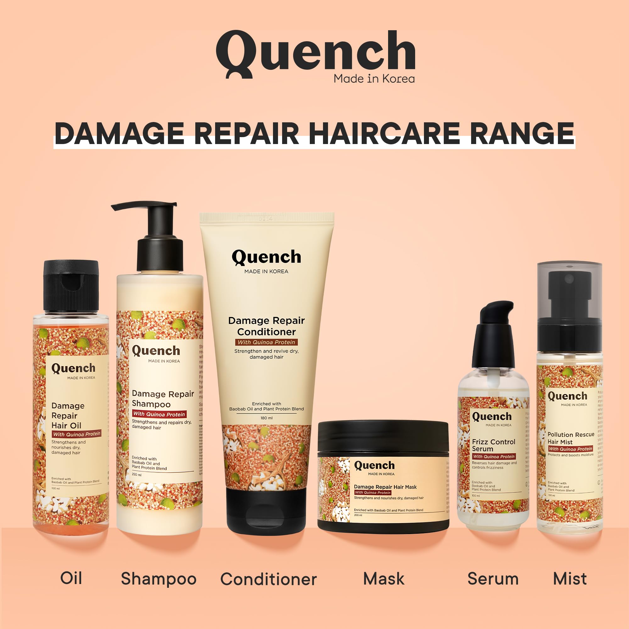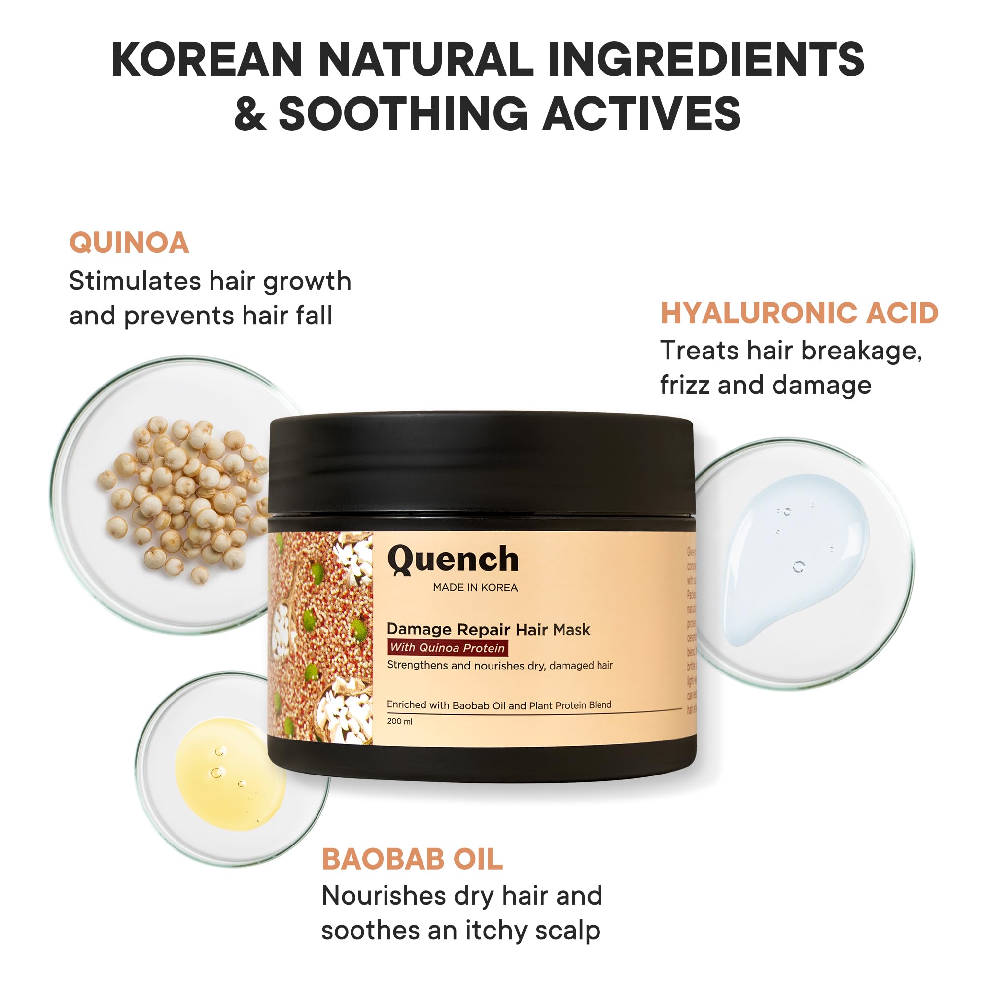Quench Damage Repair Hair Mask with Quinoa Protein & Ceramides Cream | Restores Dry & Damaged Hair | Strengthens Hair and Adds Shine | Made in Korea (200Ml)