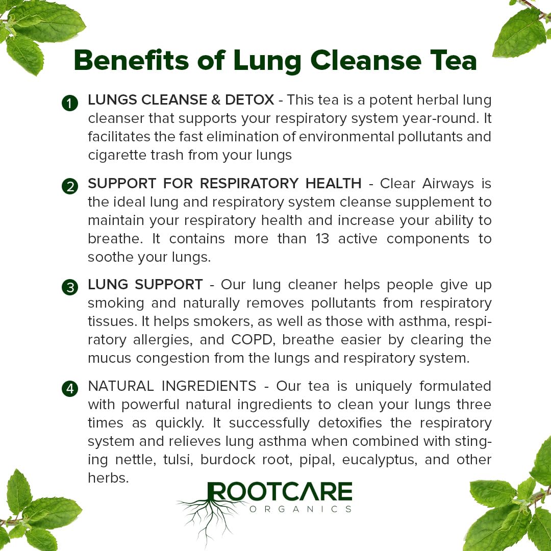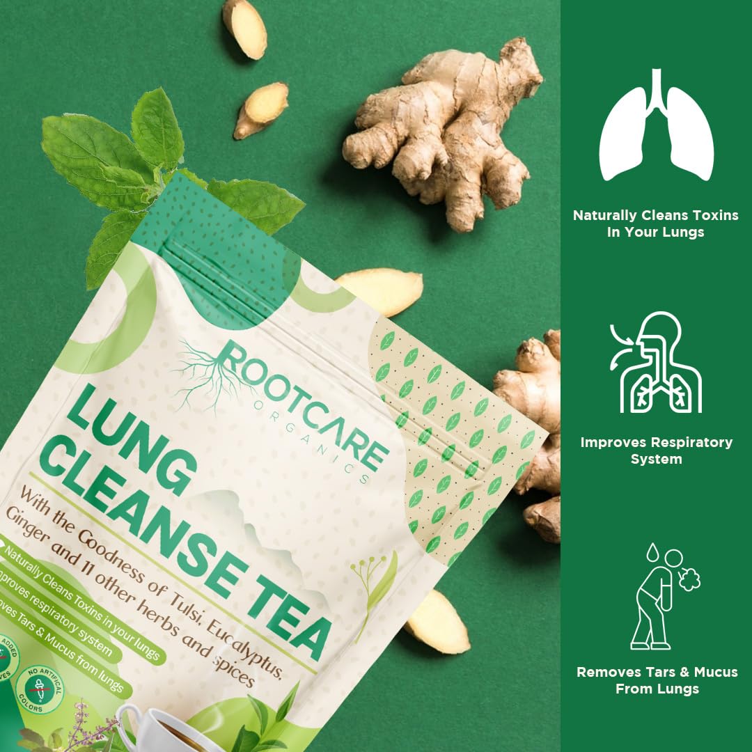 Rootcare Organics Mullein Tea For Lung Detox Cleanse | Ayurvedic Herbal Tea infused with 13 herbs | Boosts Respiratory Health & Clears Tar | Smokers Tea | Pack Of 1 Month | 100g