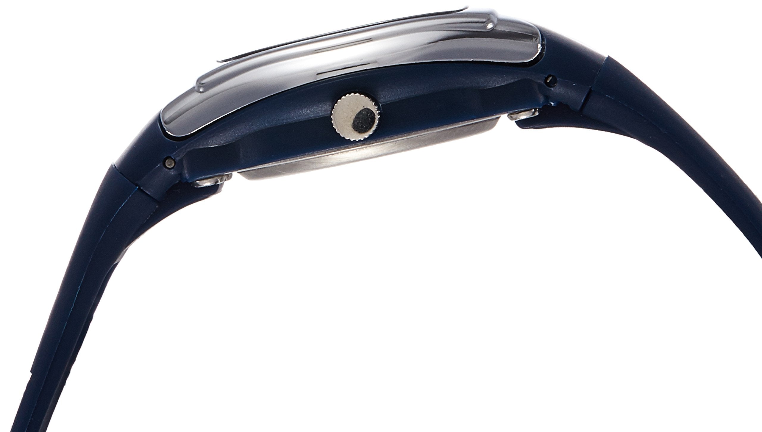Infuse your style with a playful twist and sleek sophistication with this distinctive timepiece, designed for the modern woman. Its captivating blue dial, housed within a uniquely contoured silver-toned case, features subtle textured lines and clear numerals, creating an alluring and unconventional display. Complementing this charming face, the comfortable dark blue plastic strap ensures a secure, lightweight fit and exudes an undeniable aura of casual cool and modern flair. Engineered for precise performance, this watch promises reliable time, making it an ideal accessory for expressing your individual style with a touch of contemporary elegance.