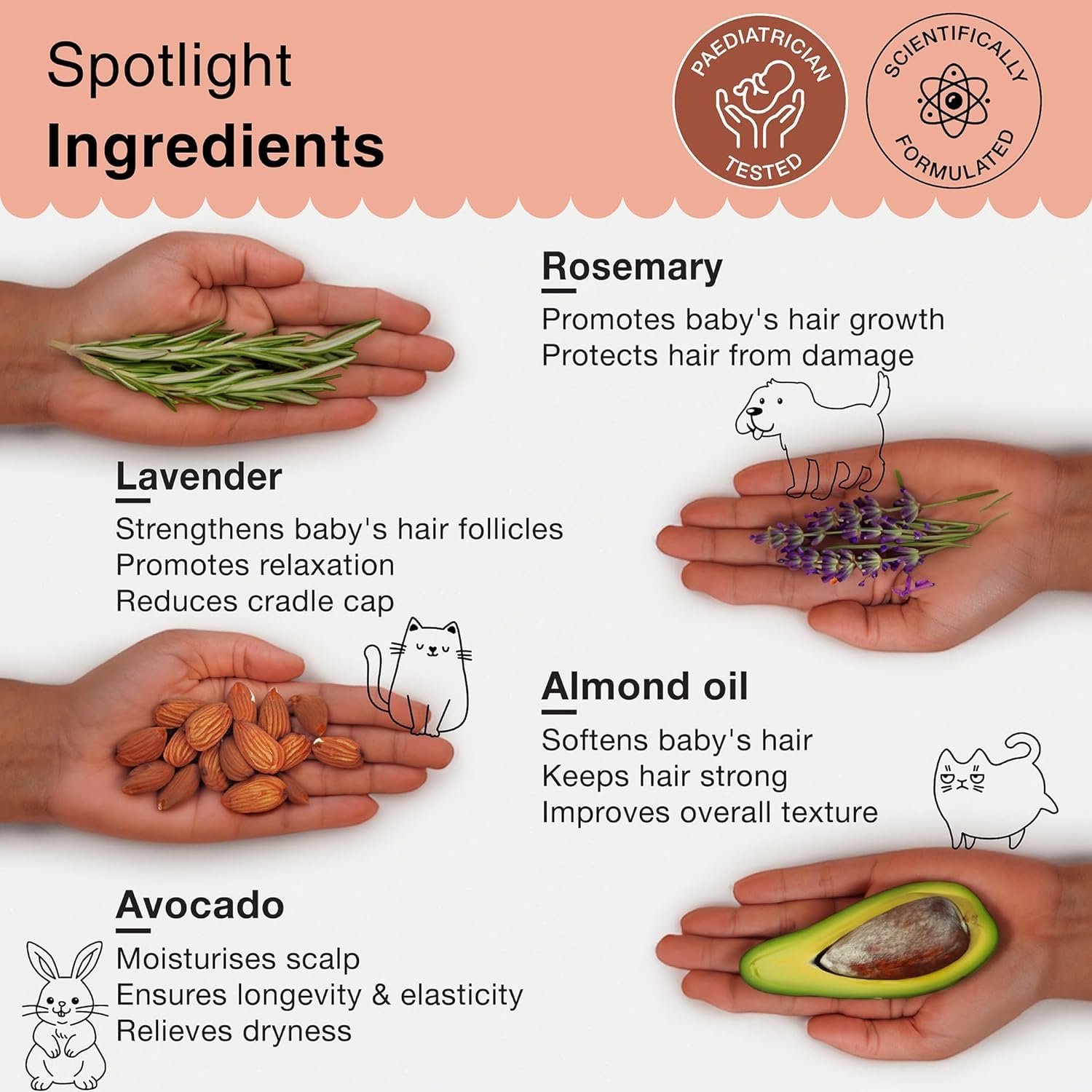 Thoughtfully Curated for Baby: Specially made to be gentle on the sensitive skin & scalp of a baby. The blend of essential, natural oils to strengthen hair at cellular level & relieves dryness.