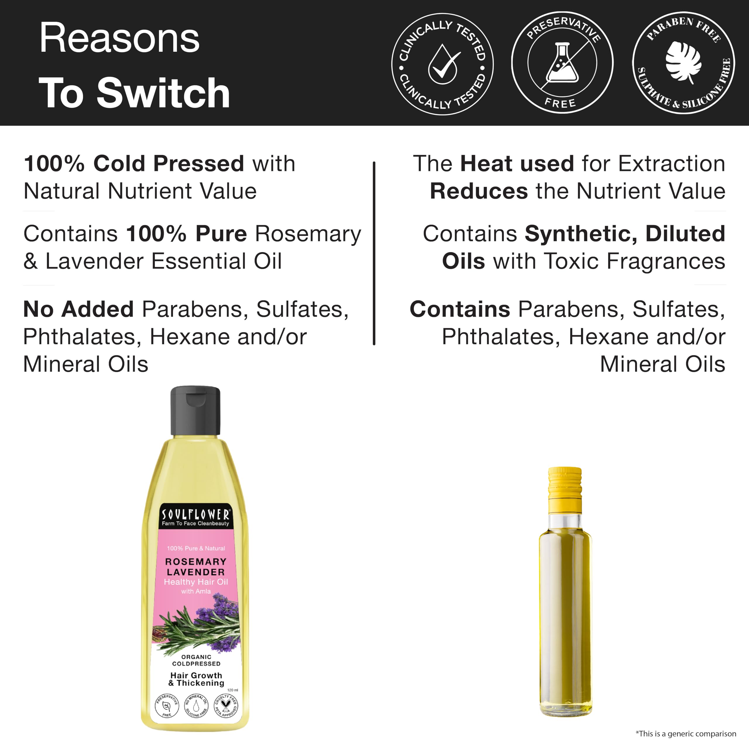 Details: It is a 100 percent pure, natural, vegan and cold pressed which nourishes hair roots and prevents hair damage. It is used for hair and scalp as it strengthens hair roots and increases the volume of `hair. This oil comprises ingredients rich in necessary nutrients and vitamins for thick long hair. This special clinically proven formula comes with antioxidant properties essential to nourish and trigger new hair follicle growth right deep from the roots. The natural castor present in rosemary and lavender have a property of getting absorbed instantly which is essential for triggering blood circulation around the scalp portion. It also contains amla which is responsible for imparting natural shine to natural. The juniper portion in this formulation is a natural antiseptic with antifungal. The benefits aided by juniper are in line with lavender thus making it an ideal sub-component in the oil. Thick, strong and long hair prevents hair damage and thinning hair relieves stress, pure, thick and natural, a natural immunity booster for hair, unclogs hair follicles and encourages hair growth how to use: Dampen your hair with water to make the oil application on scalp easy, take 2-3 ml of this hair oil and apply gently on the scalp, leave it overnight, use 3 times a week for optimal results, minimum of 21 applications are recommended and you can continue using to keep the hair healthy.