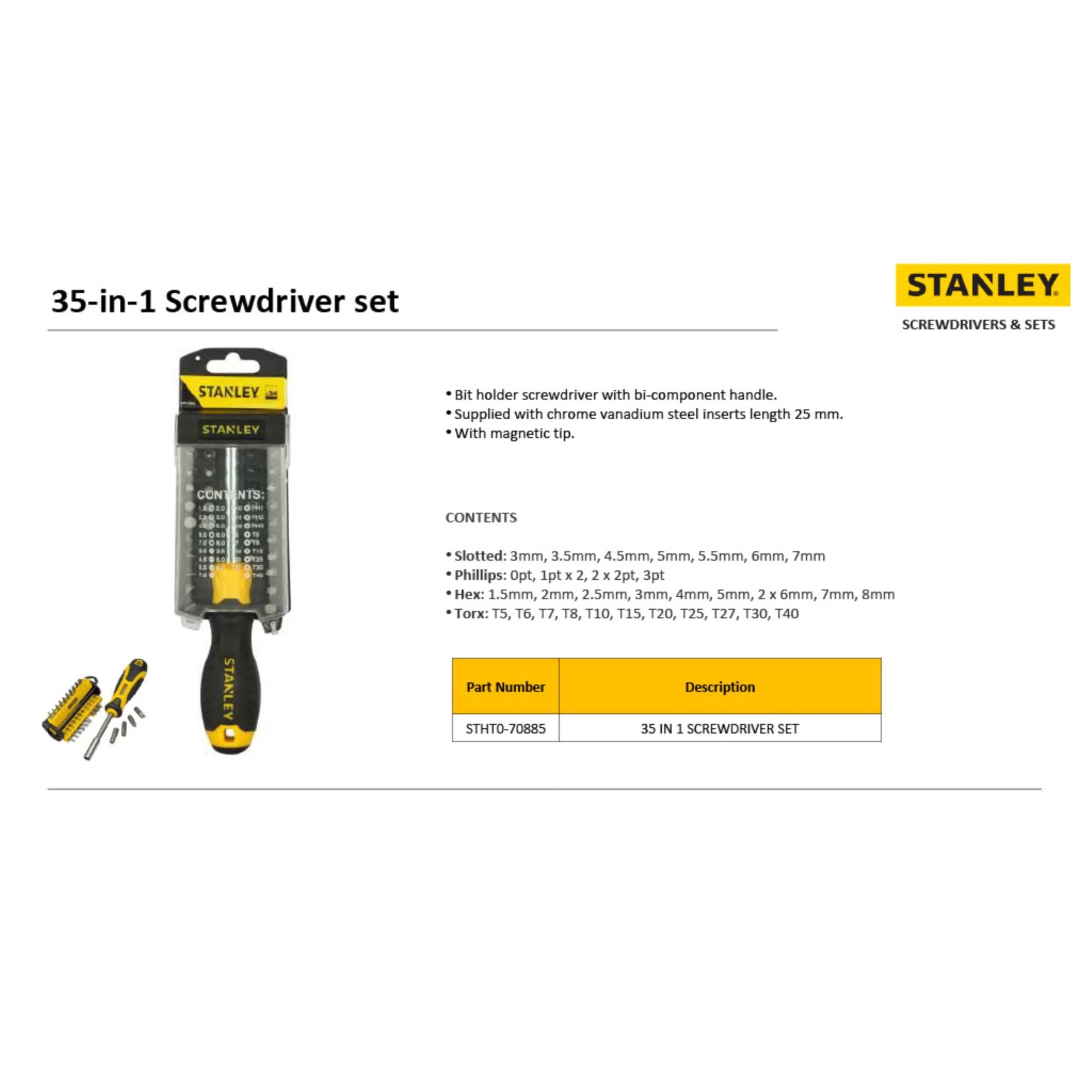 STANLEY STHT0-70885 Screwdriver Set with 35 Bits, Multi-Purpose Tool Screwdriver Set, Has Built-In Bit Storage, Ideal for Home, DIY & Professional Fastening Purposes, LxWxH: 24.5x6.5x3.5 cm