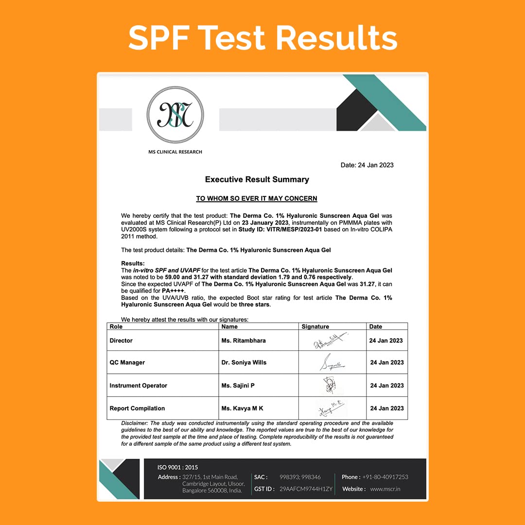 PROVIDES BROAD SPECTRUM PROTECTION (PA++++): The PA grading system in sunscreens indicates the level of protection from the UVA rays. So, the presence of more than three ‘+’ signs signifies that sunscreen provides the best protection against UVA rays. Our SPF 50 1% Hyaluronic Sunscreen Aqua Gel with PA++++ formulated with the effective combination of Hyaluronic Acid and Vitamin E protects from sun damage, while also reducing fine lines, wrinkles and making your skin soft and supple.