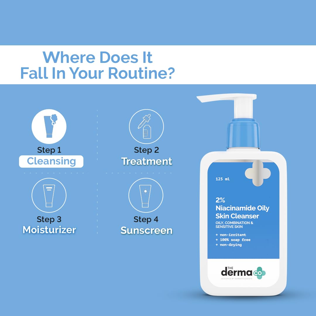 The Derma Co 2% Niacinamide Oily Skin Cleanser for Sensitive, Oily & Combination Skin 125 ml Non-Irritant | 100% Soap-Free | Non-Drying | Gently Cleanses Makeup | With 0.1% ww Salicylic Acid