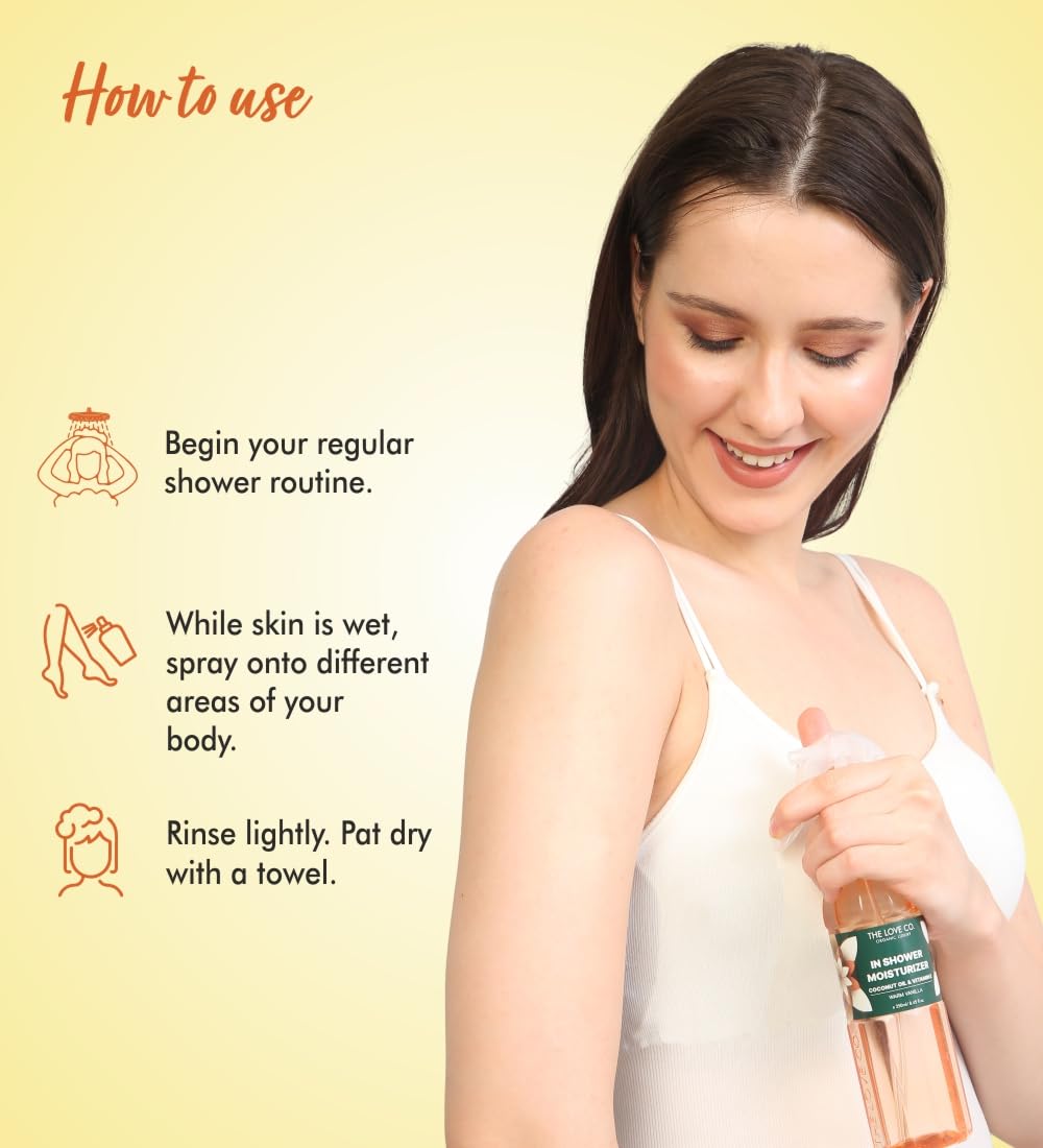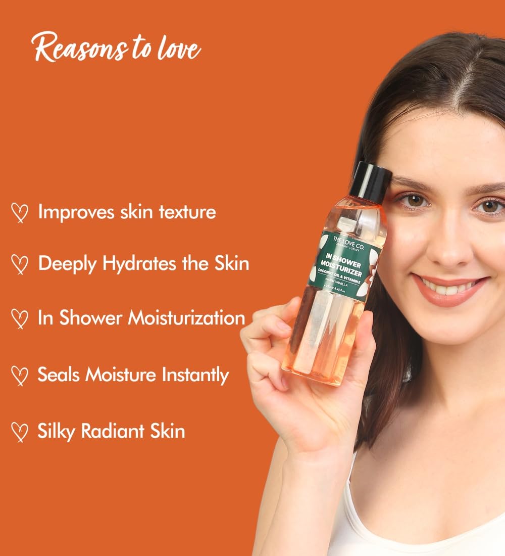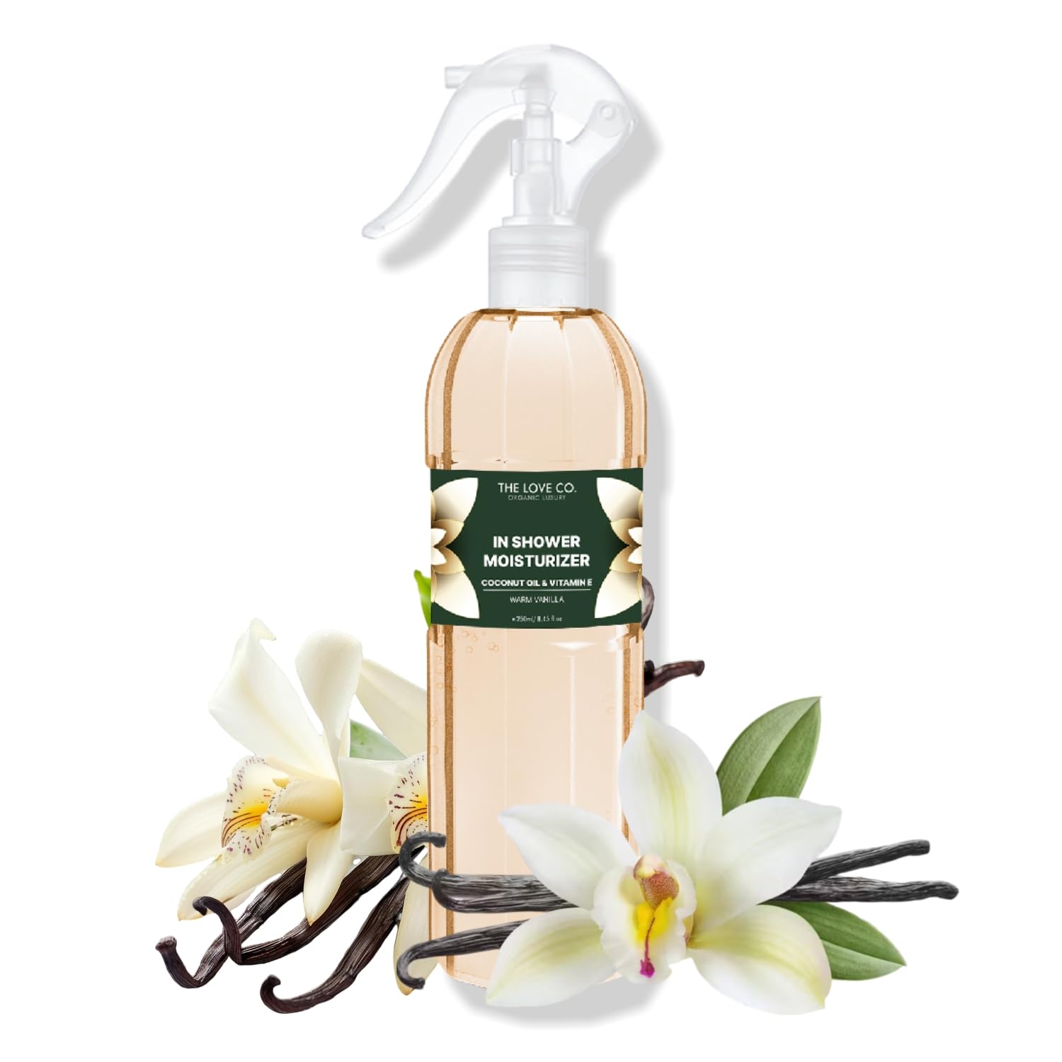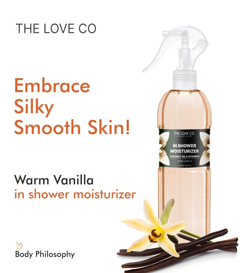THE LOVE CO Warm Vanilla In-Shower Body Moisturizer | Coconut Oil & Shea Oil | For All Skin Types | Hydrates & Plumps | Reduces Dryness & KP Bumps | Non-Greasy (250ml, Warm Vanilla)