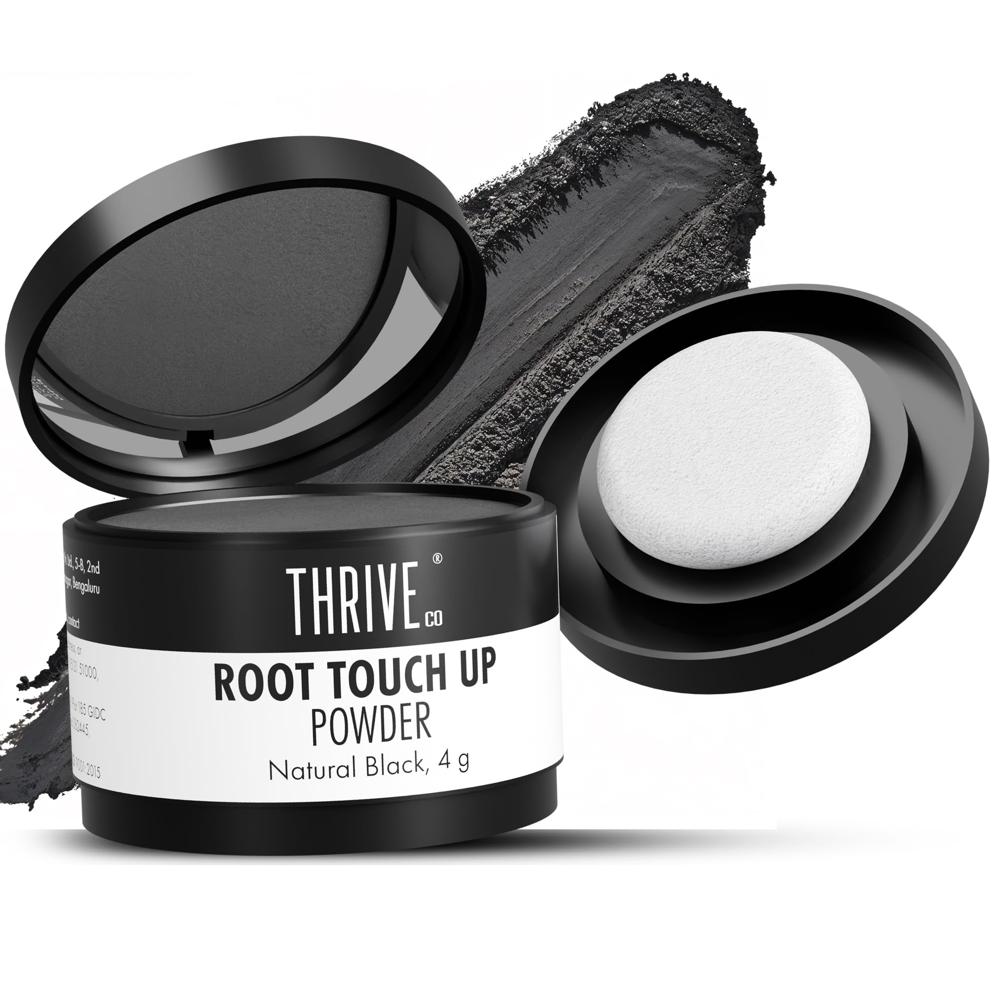 ThriveCo Root Touch-Up Powder Natural Black | Instantly Covers Greys & Bald Spots | Non-Sticky, Full Coverage, Mess-Free Application | Hyaplex™ Anti-Breakage Technology | 4g