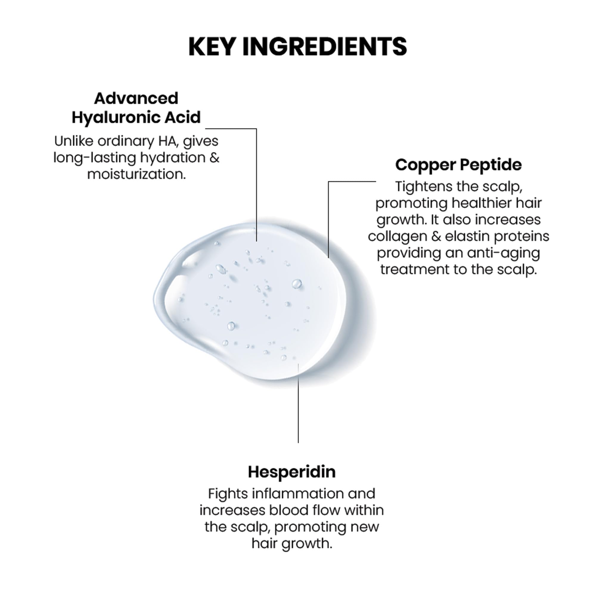 A quick-absorbing, leave-in scalp serum to fortify, tighten and intensely hydrate the scalp to promote healthy hair growth. It is enriched with a proprietary blend of Advanced HA, Hesperidin, and Copper Peptide to support healthier and stronger hair growth.