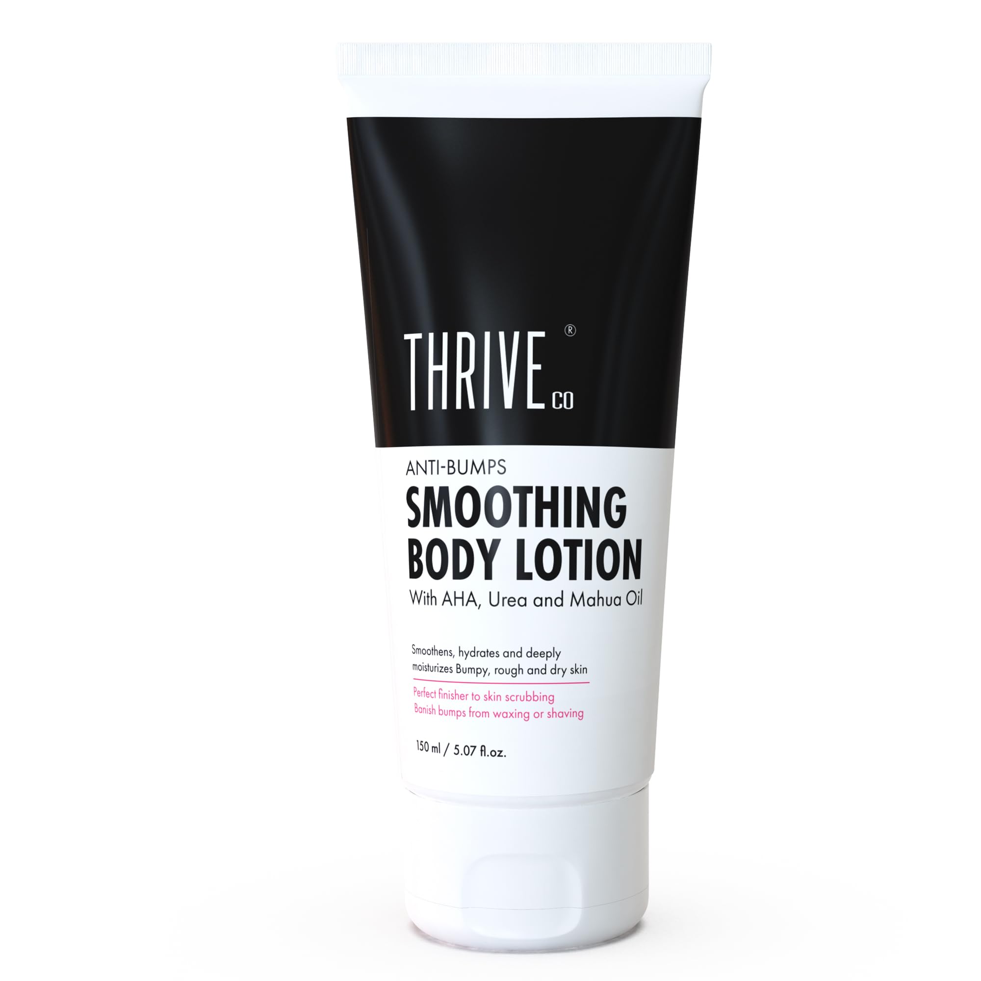 ThriveCo Smoothing Body Lotion for Dry, Rough & Bumpy skin | With AHA, Mahua Oil & Urea | Moisturizes, Hydrates & Treats Keratosis Pilaris,Strawberry Skin in Men & Women | 150 ml