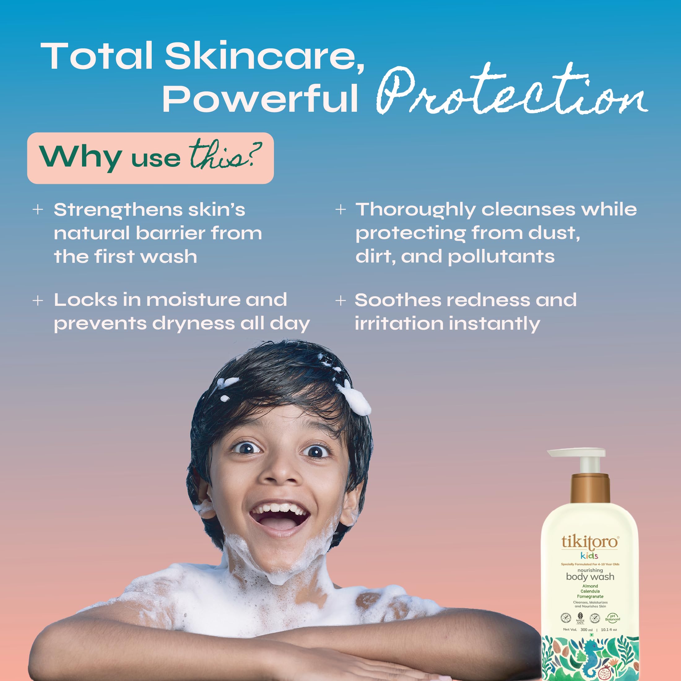 Nourishing Body Wash cleanses, moisturizes, and nourishes skin. Soothing Body Lotion moisturizes, soothe,s and nourishes skin. It is non-greasy and fast-absorbing.
