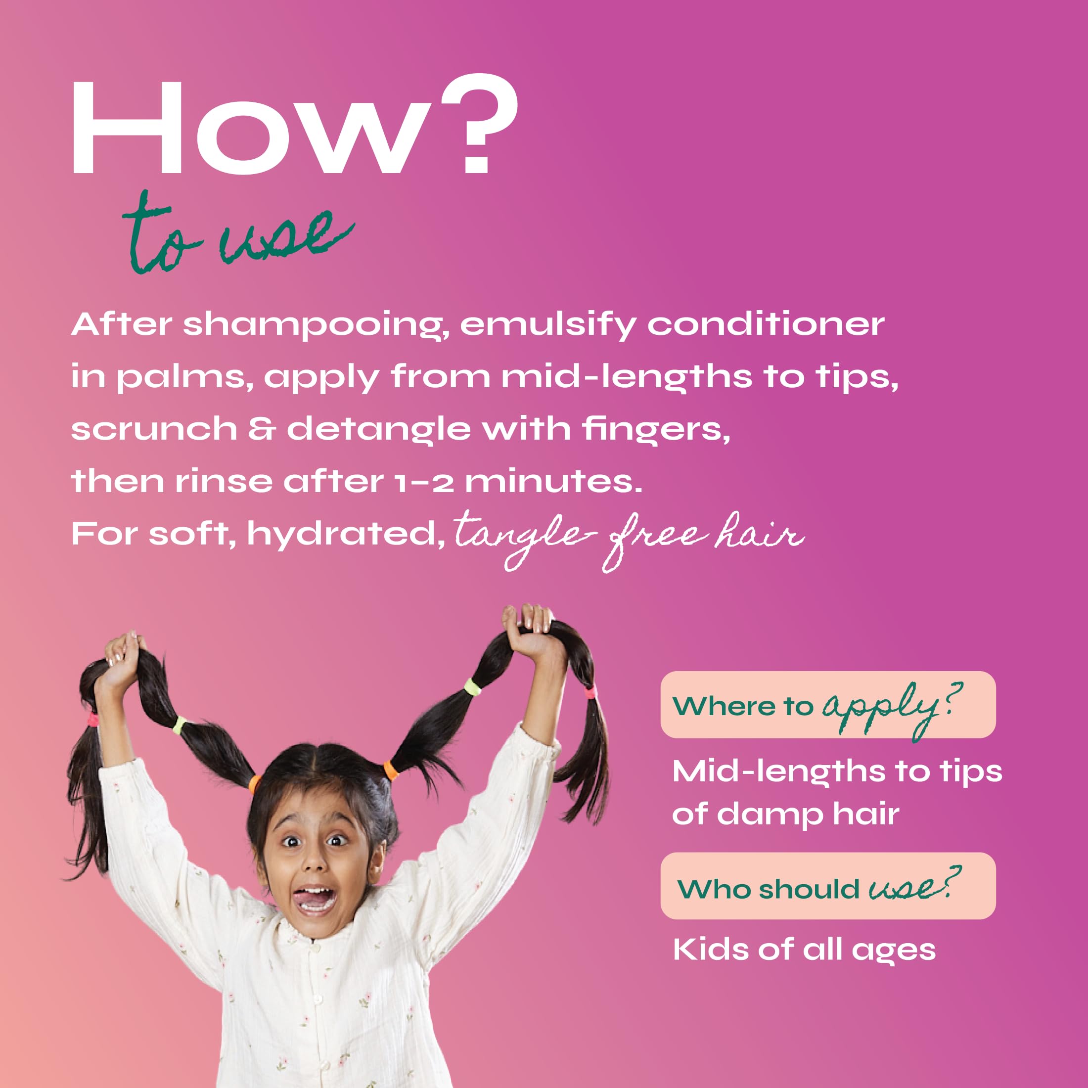 - MADE FOR KIDS’ DAILY HAIR NEEDS: This gentle, nourishing hair conditioner is specially formulated for kids aged 4-10. It deeply hydrates hair by smoothening cuticles and forming a protective film. It keeps strands super soft, shiny, and totally frizz-free—perfect for everyday care and completely safe for kids' delicate scalp