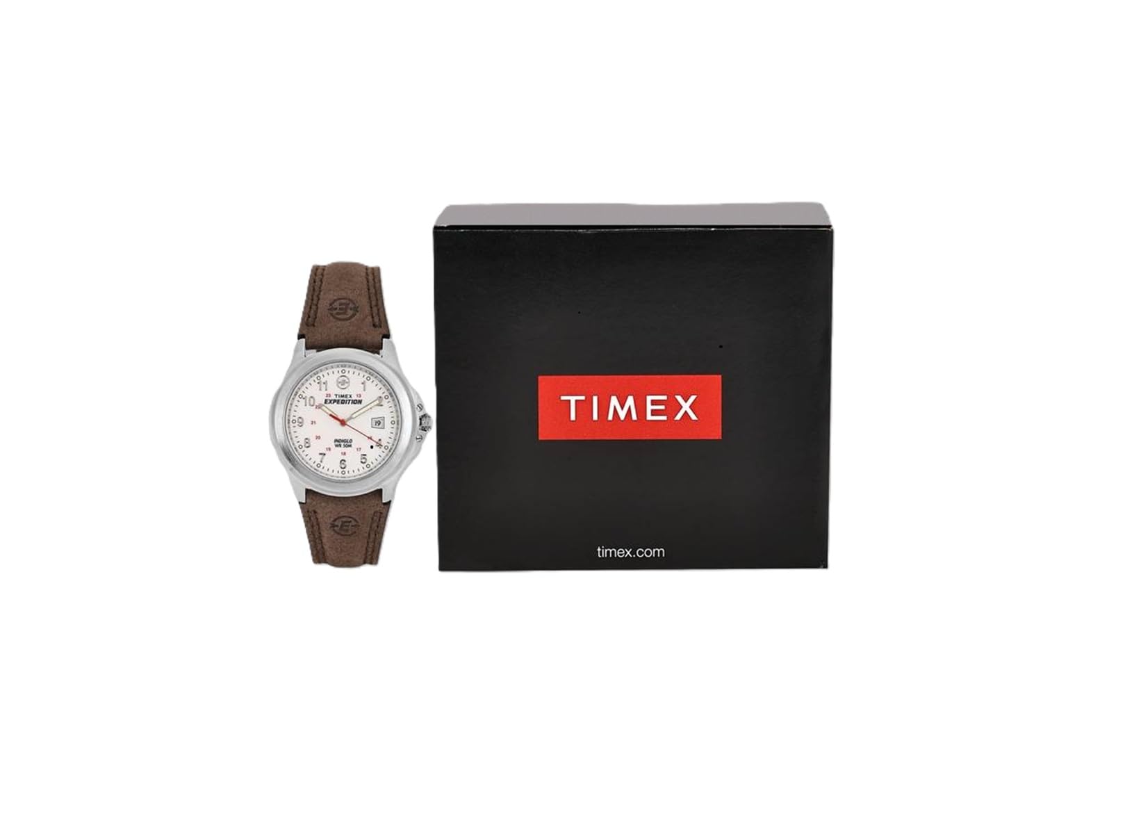 TIMEX Expedition Field Analog Watch for Man with White Round Dial & Brown Leather Strap Band Water Resistant Men's Wrist Watches - T44381E6