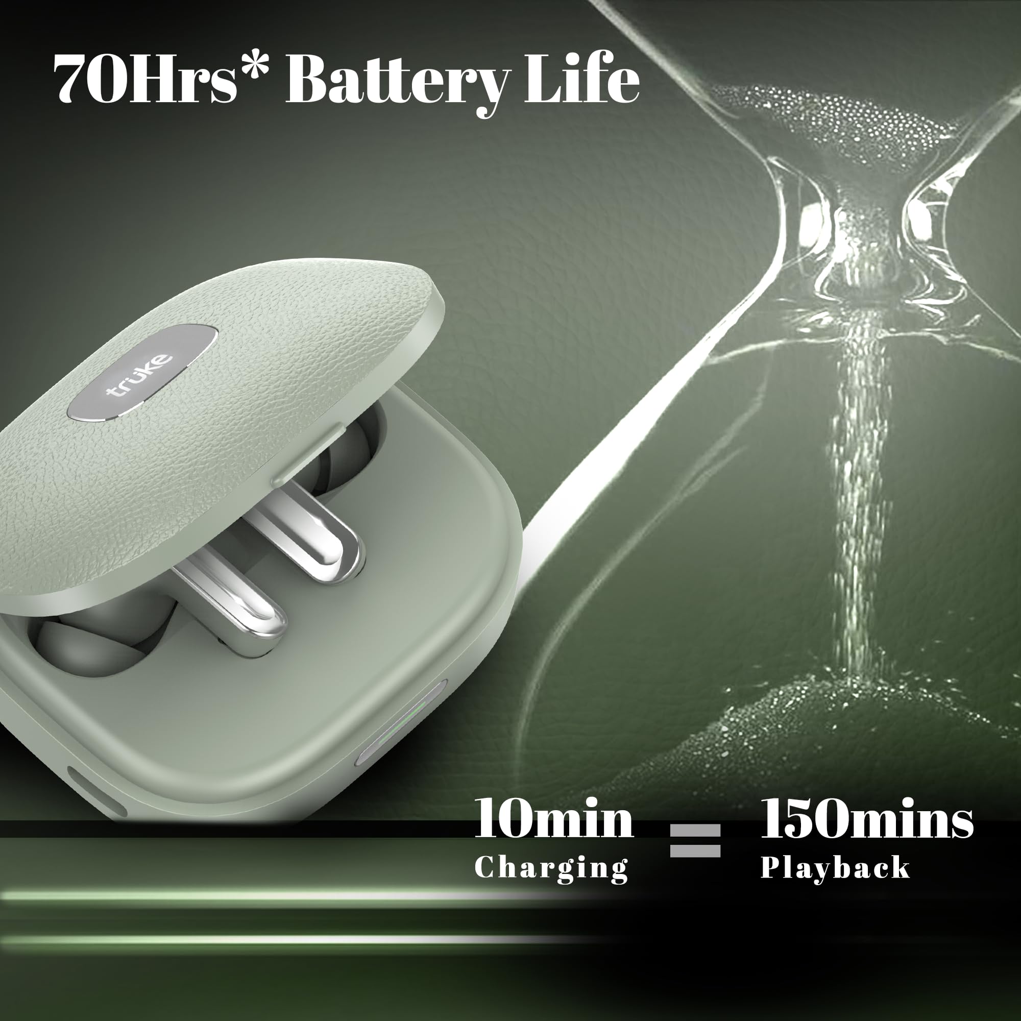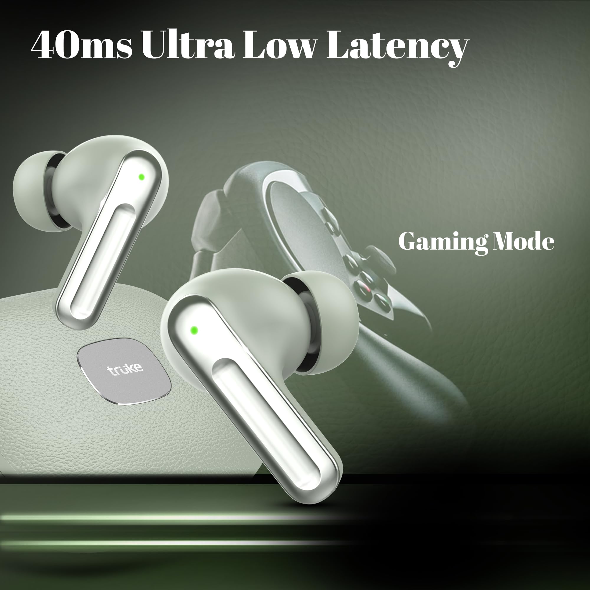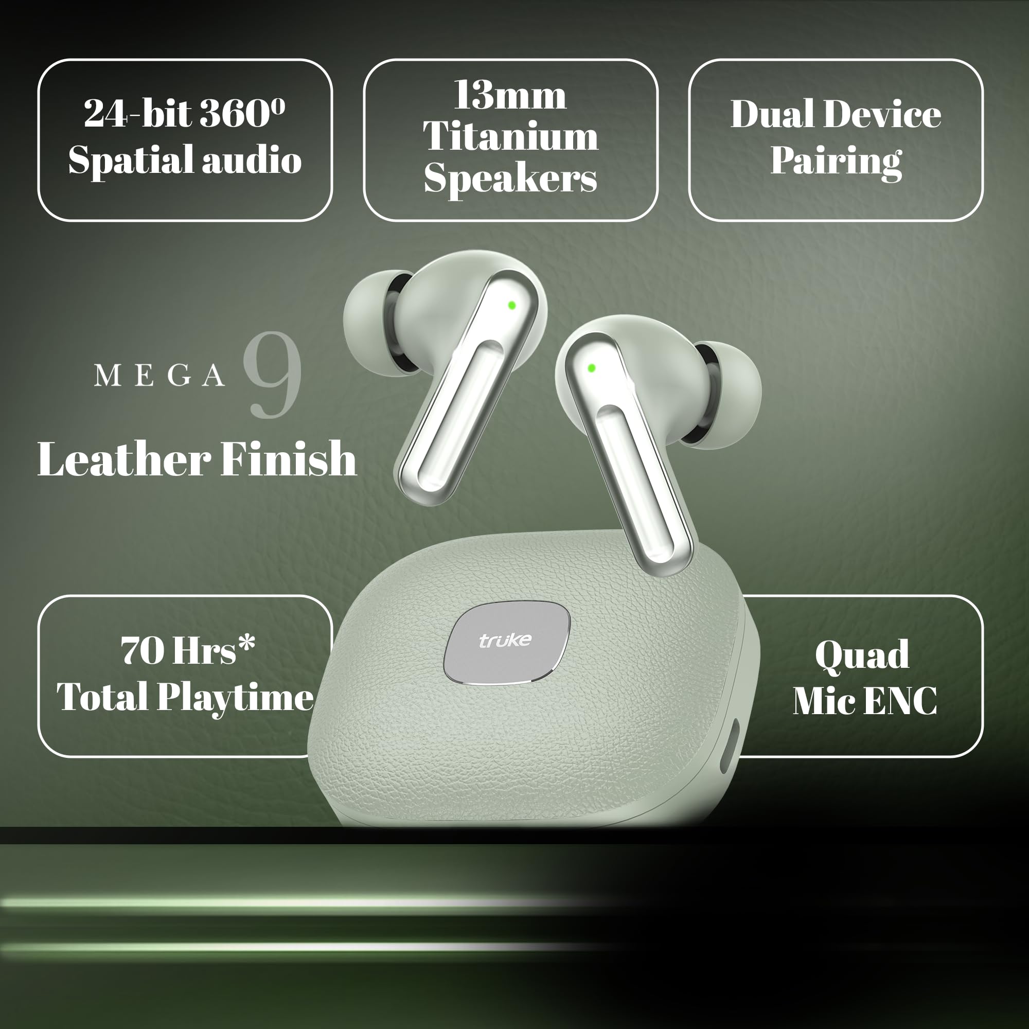 truke Mega 9 New Launch True Wireless in Ear Earbuds W/ 24-Bit Lossless Spatial Audio, 70H Battery Fast Charge Ear Buds, Leather Finish, 13mm Speakers TWS, 40ms Ultra Low Latency, 4Mics ENC