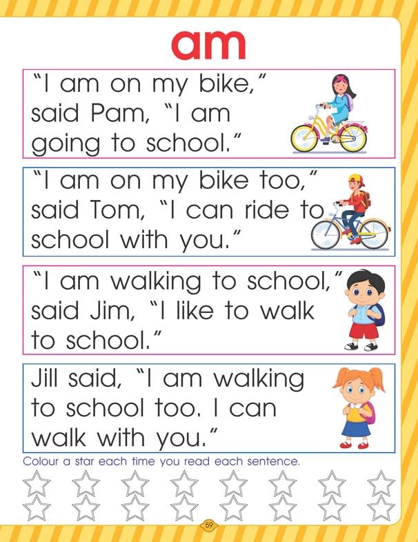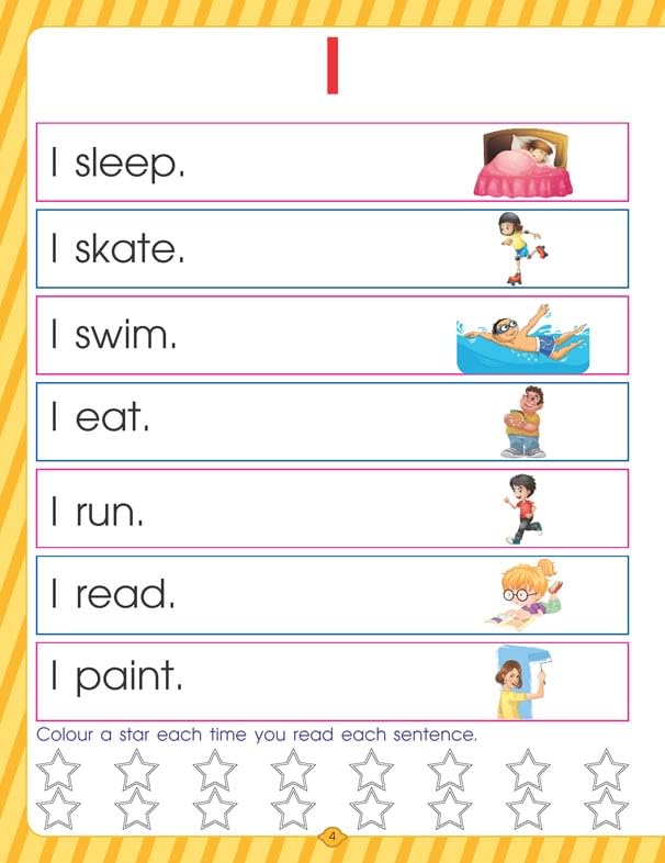 Example sentences, colourful pictures make this book friendly and encouraging. As kids progress through each lesson, they familiarise themselves with sight words and strengthen their spelling skills. Colouring the stars given for every word and sentence after reading reinforces learning, boosts confidence, and help kids see their progress in real-time.