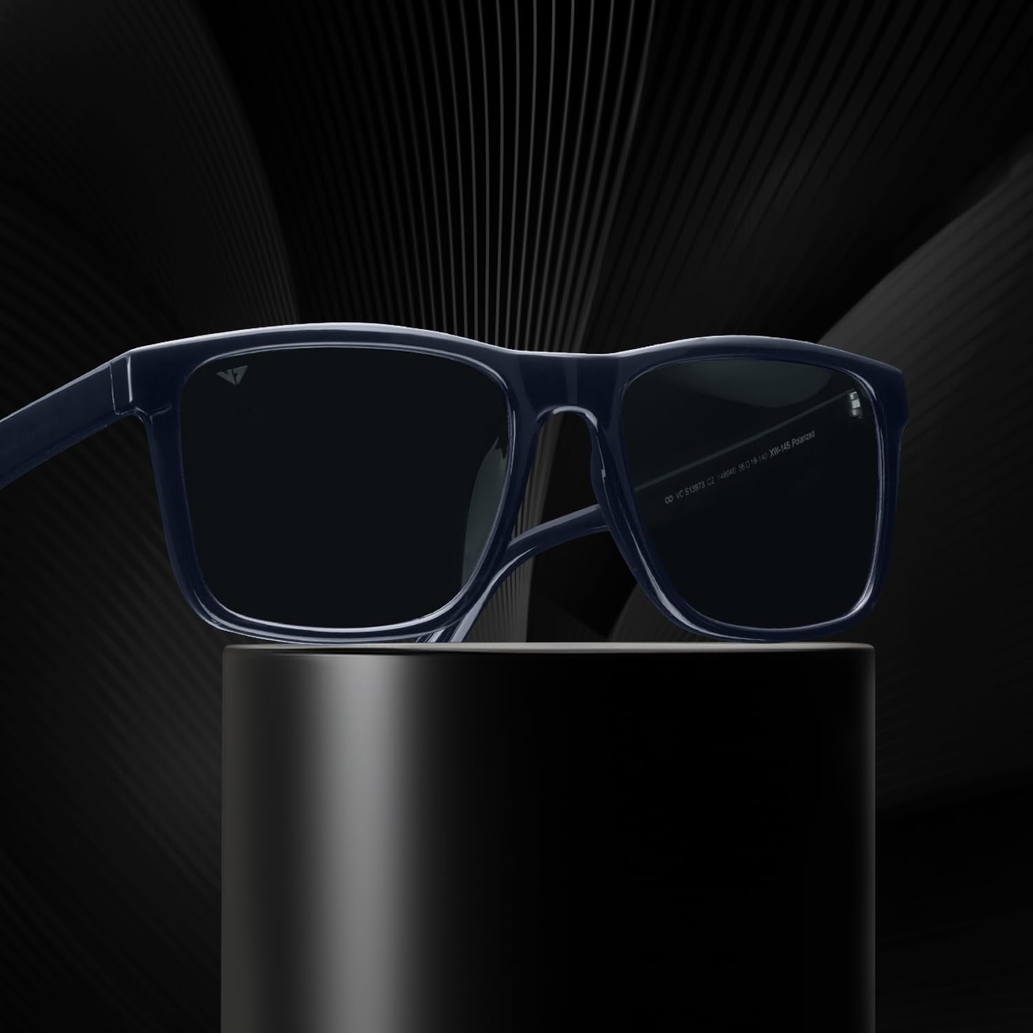 VINCENT CHASE EYEWEAR By Lenskart | Full Rim Wayfarer Branded Latest and Stylish Sunglasses | Polarized and 100% UV Protected | Men & Women | Large | VC S13973 Blue Frame/Lens Grey - Pack of 1