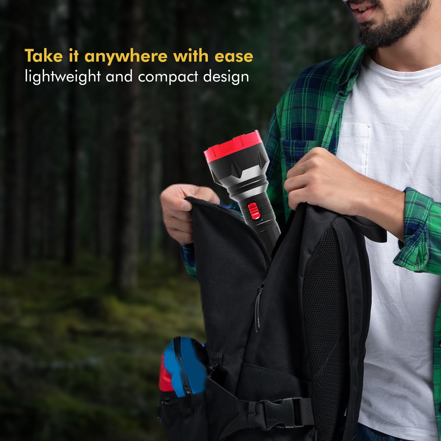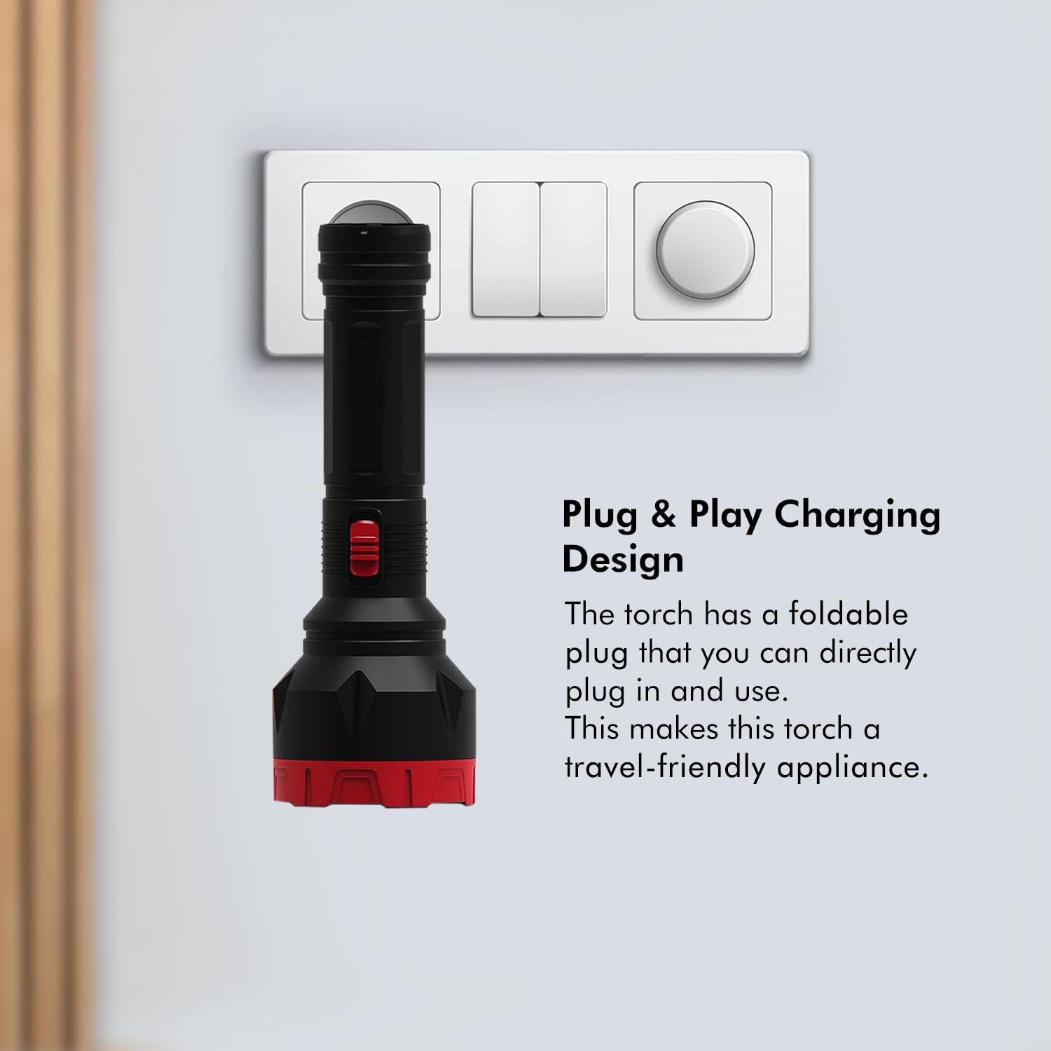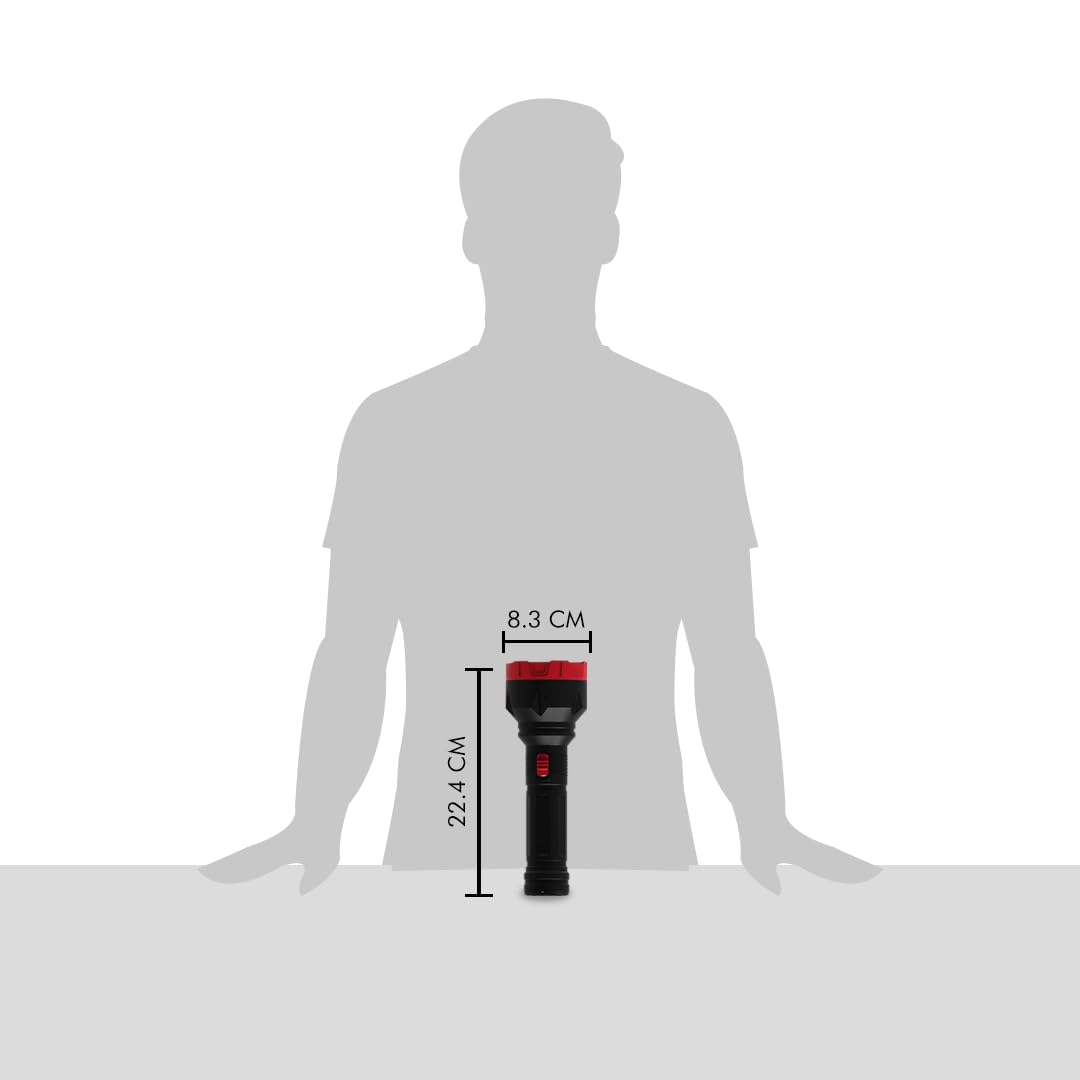 wipro Luster 3W Led Bright Rechargeable Torch with LED Light | Dimmable Emergency Torch Light with 1200 mAH Li-Ion Battery | Compact Torch with 2 Step of Brightness | Red | Pack of 1