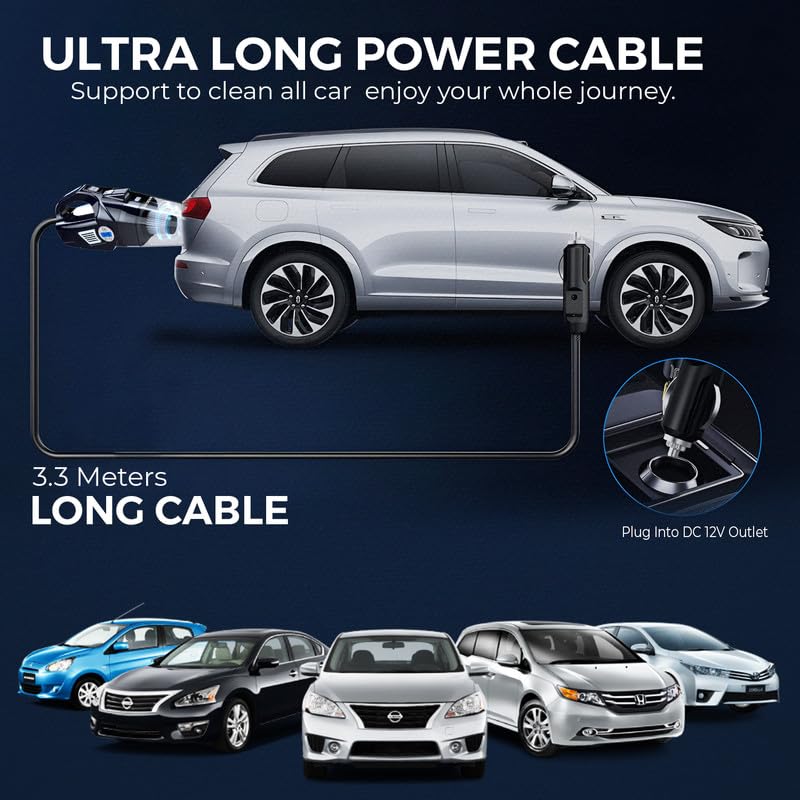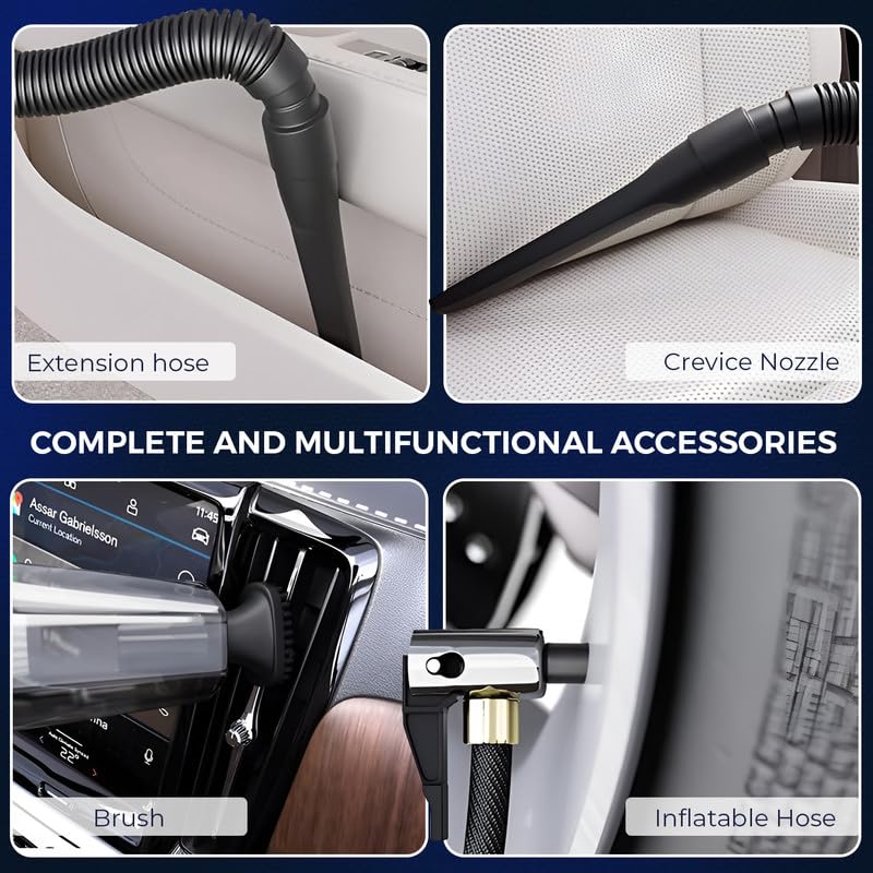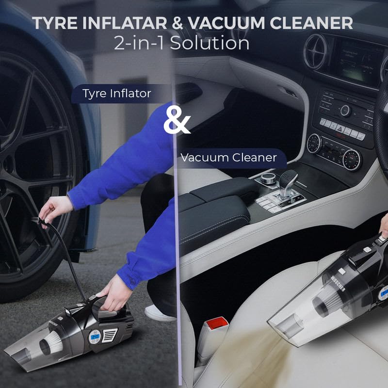 WOSCHER Woscherr 578D Car Vacuum Cleaner 2in1 & Tyre Inflator for Car and Bike 150 PSI |120 Watt Car Vaccine Cleaner High Power 5500PA Handheld|LED Light| Auto Shut Off| Wet/Dry Use